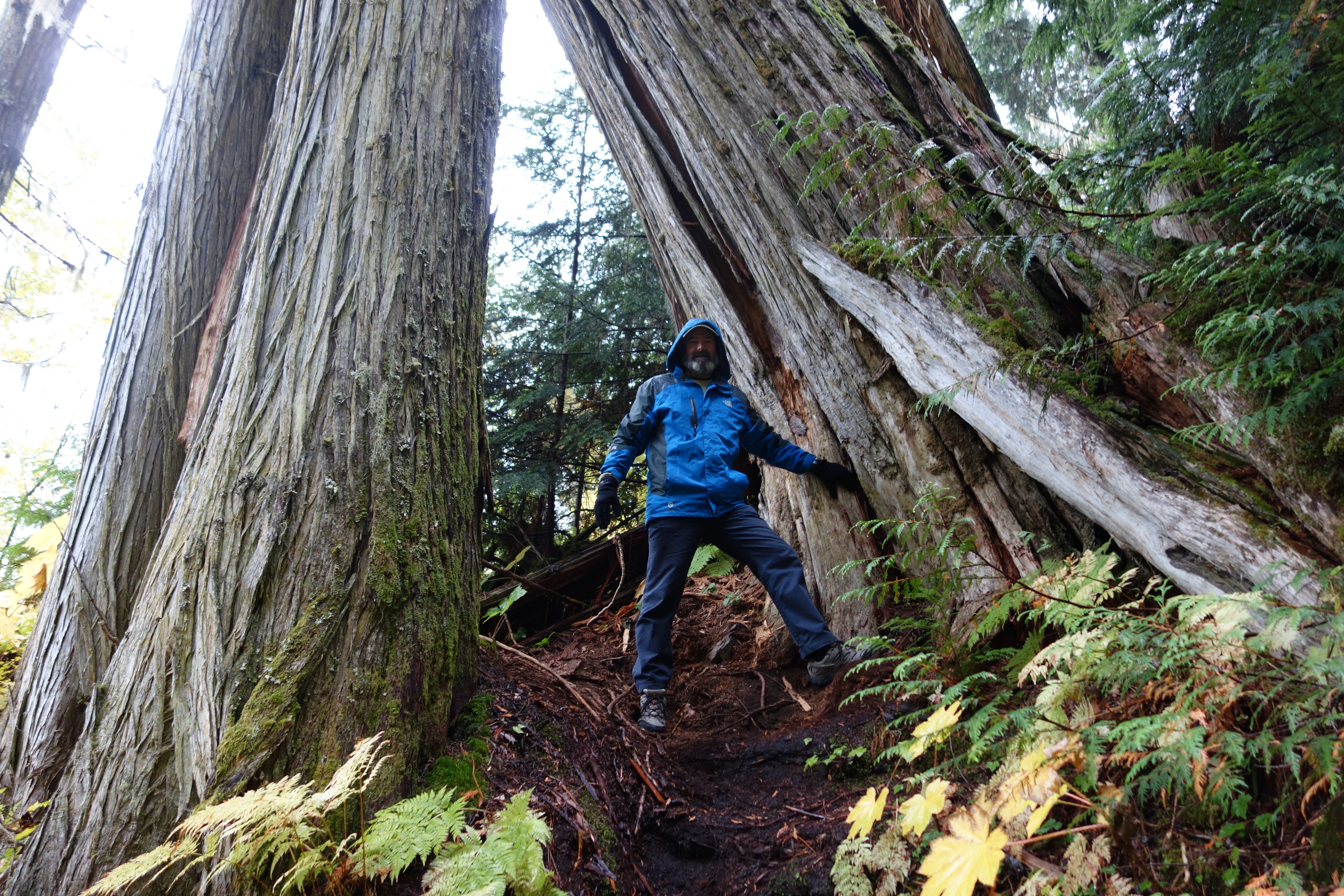 The biggest of these western red cedars have prospered on these damp fertile slopes for over 1,000 years and perhaps even twice that. Adding to the atmosphere, the morning was cold and rainy, really fairly miserable, but it didn’t matter a bit as we walked amongst these giant living beasts, marvelling at their size, survivability and beauty. The biggest of the lot, cleverly named Big Tree, had a diameter of 5 metres (16 feet), perhaps predated Christ and was an absolute beauty to behold.