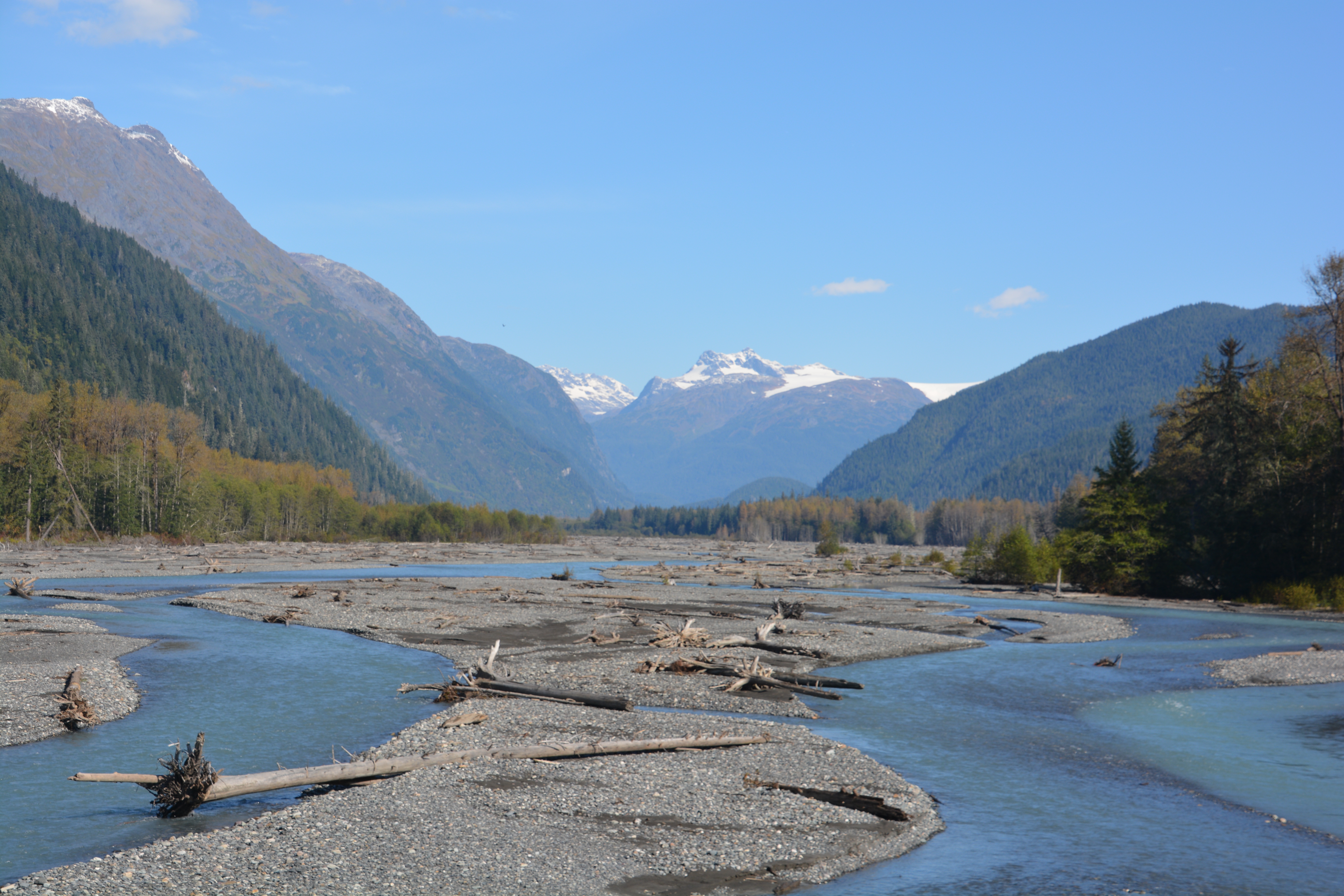 The Bear River that flowed through the valley to the ocean provided a great foreground to the mountains and glaciers