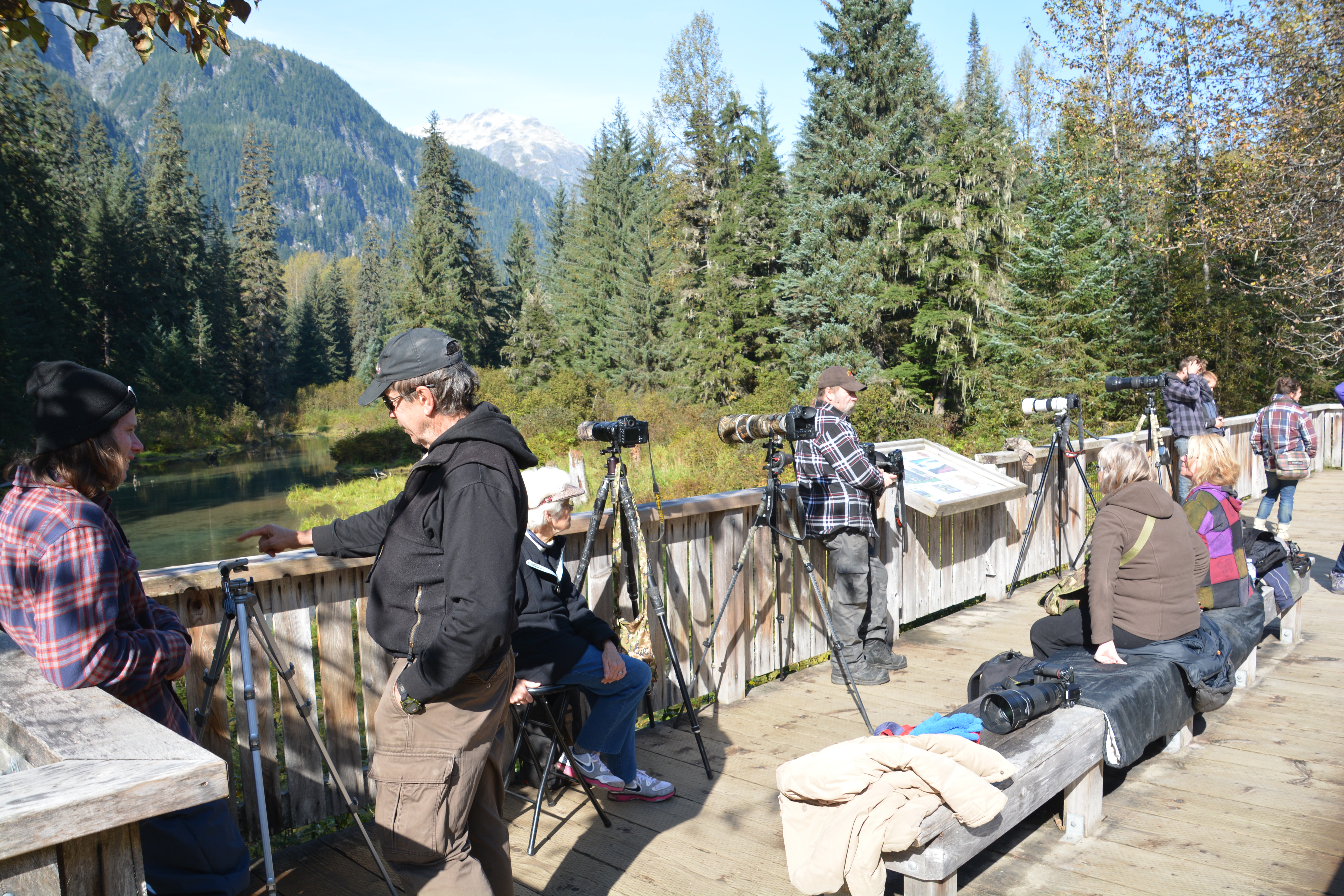 But beyond all that, Hyder exists because at the end of the road the US Forest Service has built a boardwalk and viewing platform for people to observe black bears and grizzlies come down to feast on spawning salmon between July and September. This is one of the premier places in the north to watch this festival, especially the two types of bears co-existing, and it draws people who would otherwise stay on the main highway 60 kms away. We were too late for the bears but enjoyed the scene before about-facing and heading back past the glaciers and ending the day camped in an old logging camp.