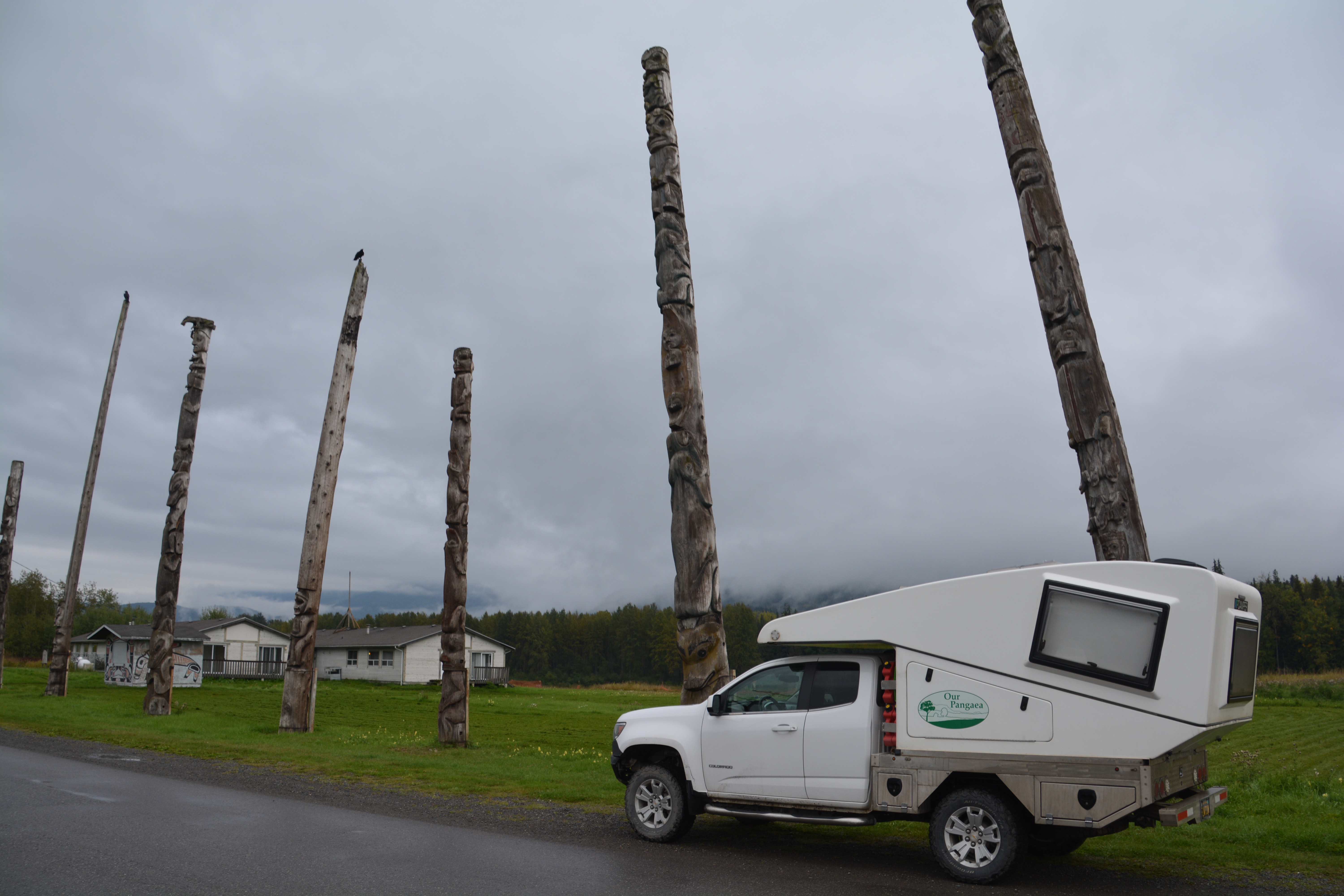 We stopped by another native Canadian rebuilt village with their very tall totem poles and appealing art work, through rural areas with fences, barns, horses and cows, all very new and strange for us, and sadly realised we had left the world of permafrost, black spruce, bears on the side of the road and the remoteness we had come to love.