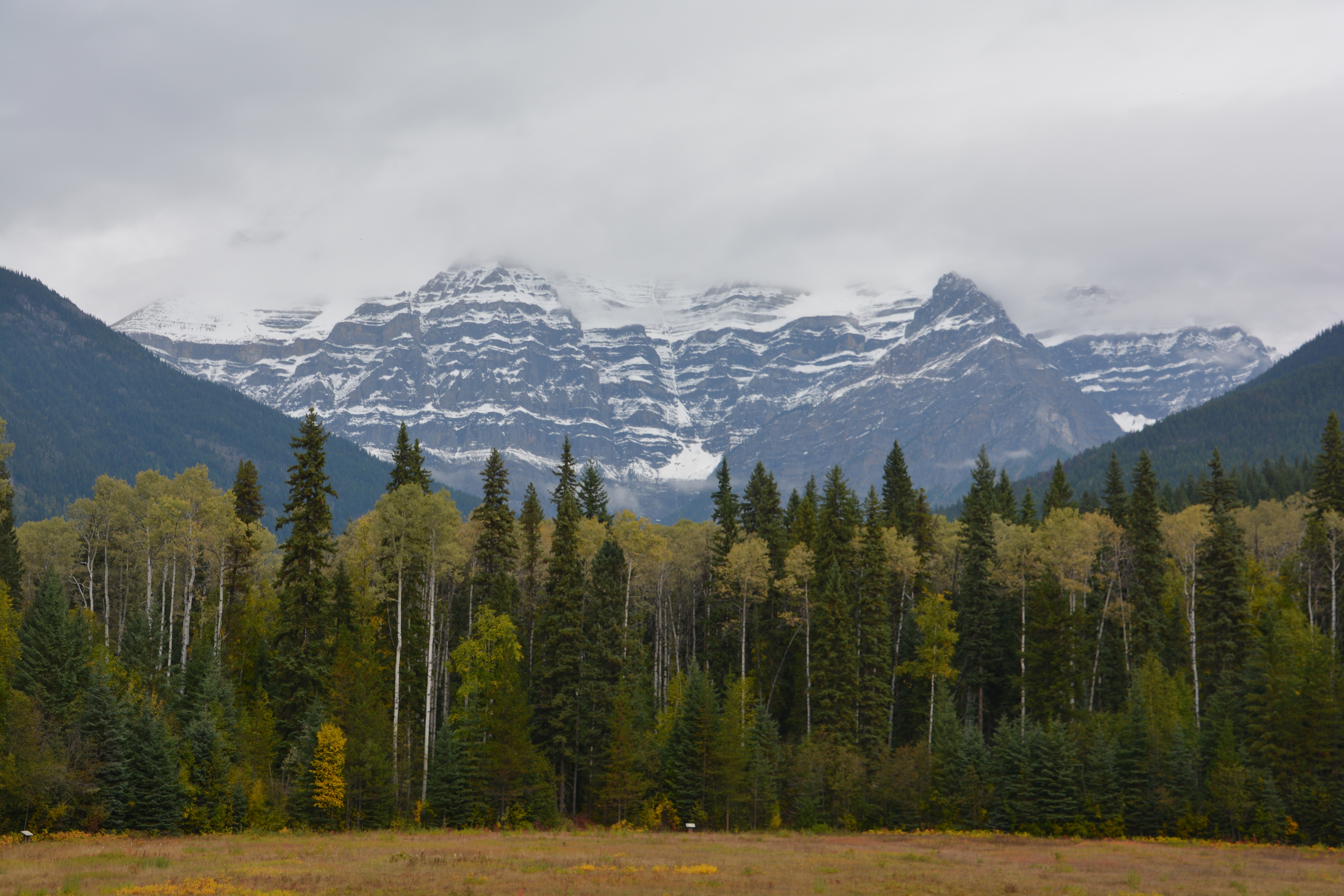This is Mt. Robson, the highest mountain in the Canadian Rockies, but unfortunately we could only see the lower third. The photos of it on a clear day are astounding.