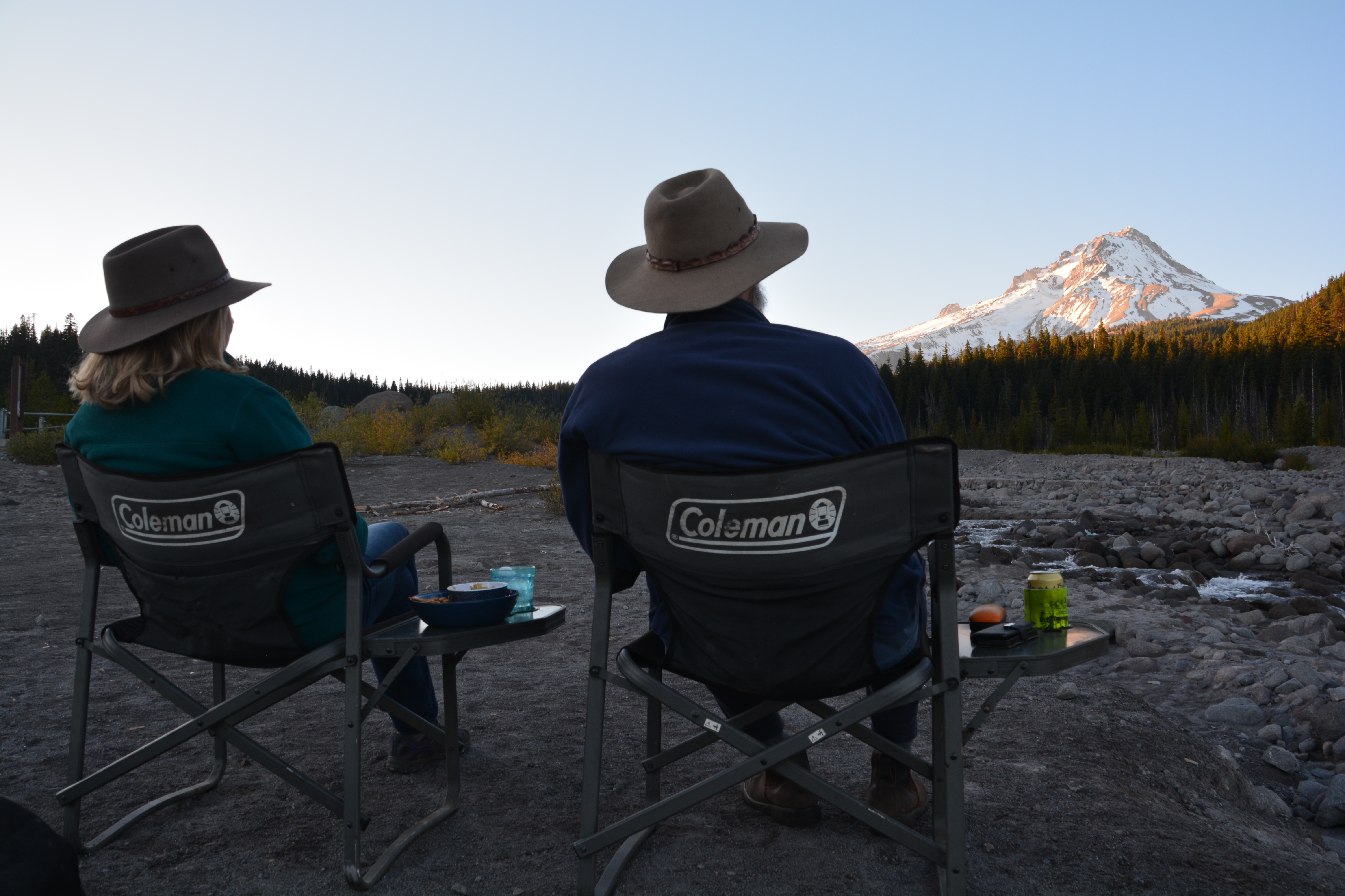 We checked out the popular little town of Hood River, very cool, but were not tempted by their numerous microbreweries or bright sunny life on the river. Looming above the town is handsome Mt. Hood, another volcano rising from lower levels that tower above all around it. Mt. Hood is much more pointed than a traditional volcano and after driving around to its southern side we camped at about 4,000 feet (1,300 metres) on the banks of the White River with its snowy top looking down on us. The snow sparkled from the light of the full moon and the river gurgled as it rushed past us. We gave it a perfect 10.