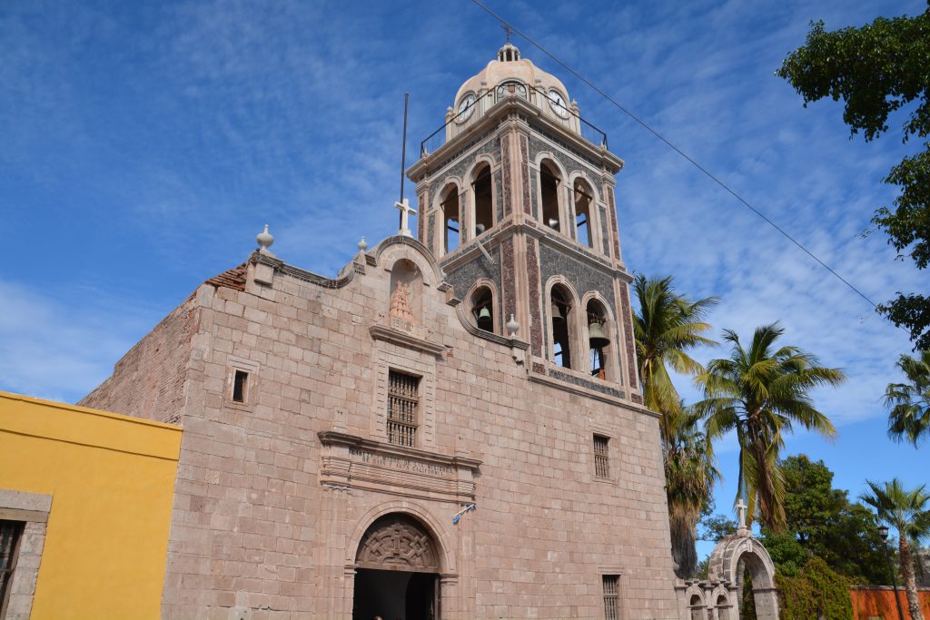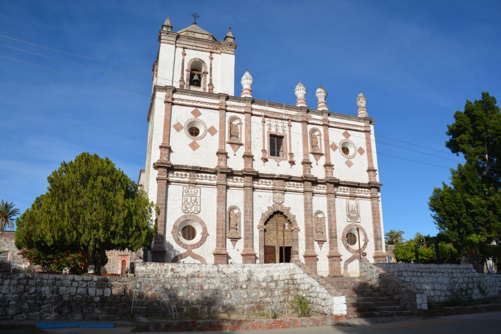 Alas, the next morning it was time to move on. After buying hot tamales for breakfast, some fruit and vegies plus filling up our water tank courtesy of another local vendor and saying goodbye to all our neighbours we slowly – and reluctantly – packed up and moved south. We followed the coast towards the larger town of Loreto, marvelling at all the beautiful beaches available for camping and admiring the sharp and dramatic mountain range to our right, eventually pulling into this smart and clean town for a look at their historic late 17th century mission – the first in Baja – and doing some resupply shopping.