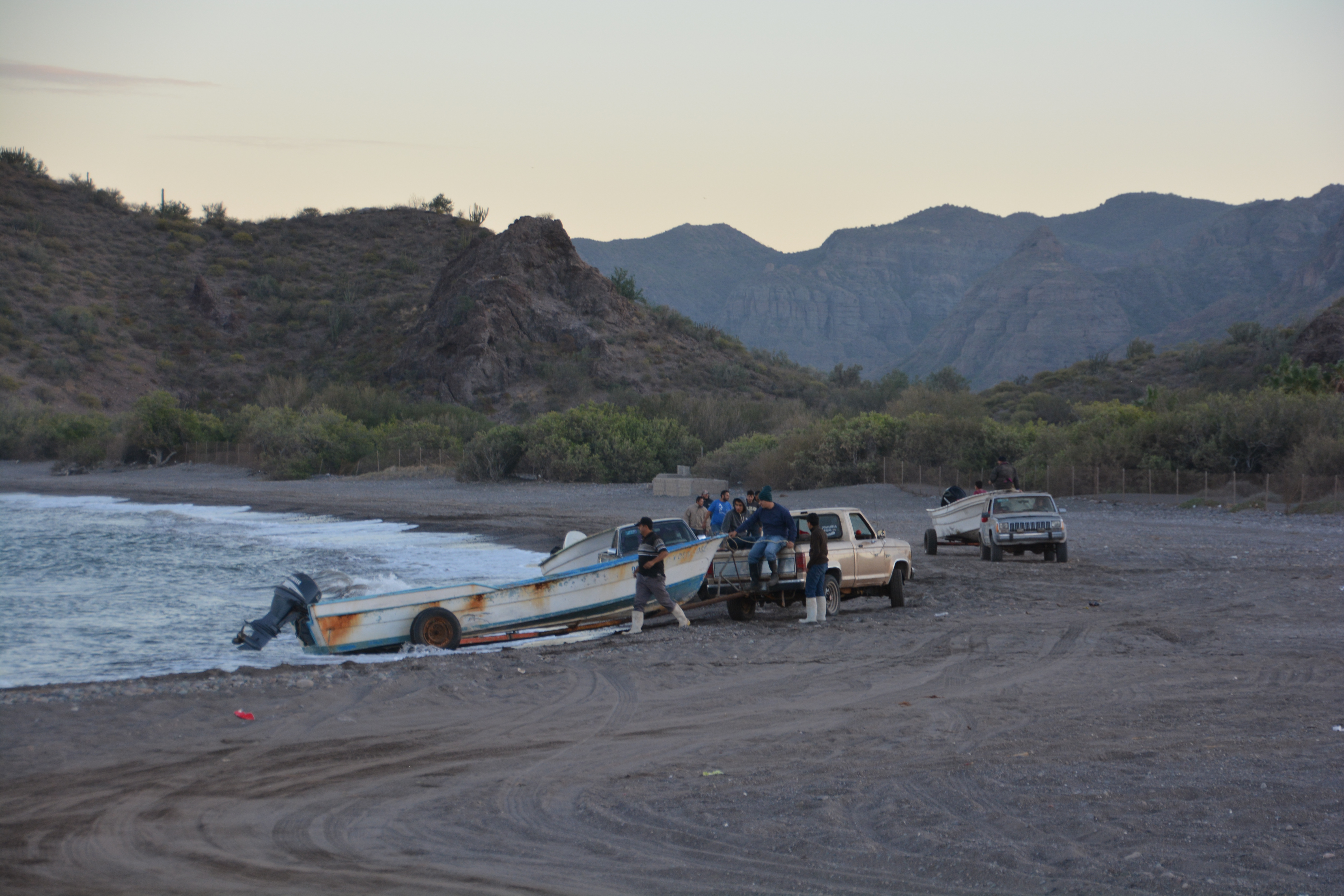 We were visited by a number of trucks pulling their fishing boats. They launched the boats from the beach and disappear into the fading light for a night of fishing.
