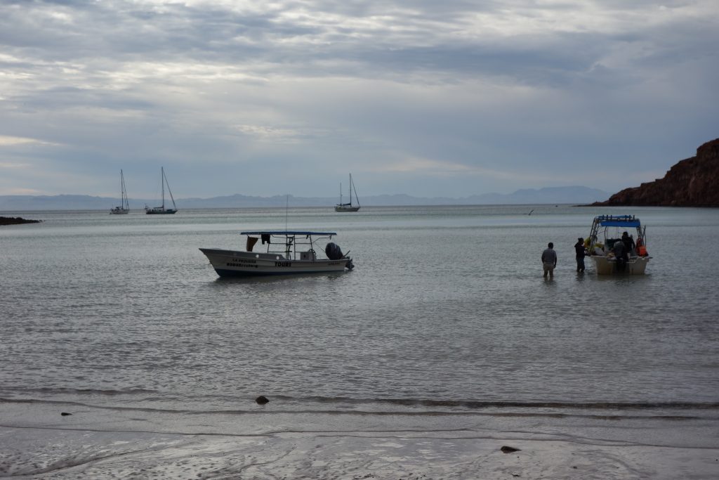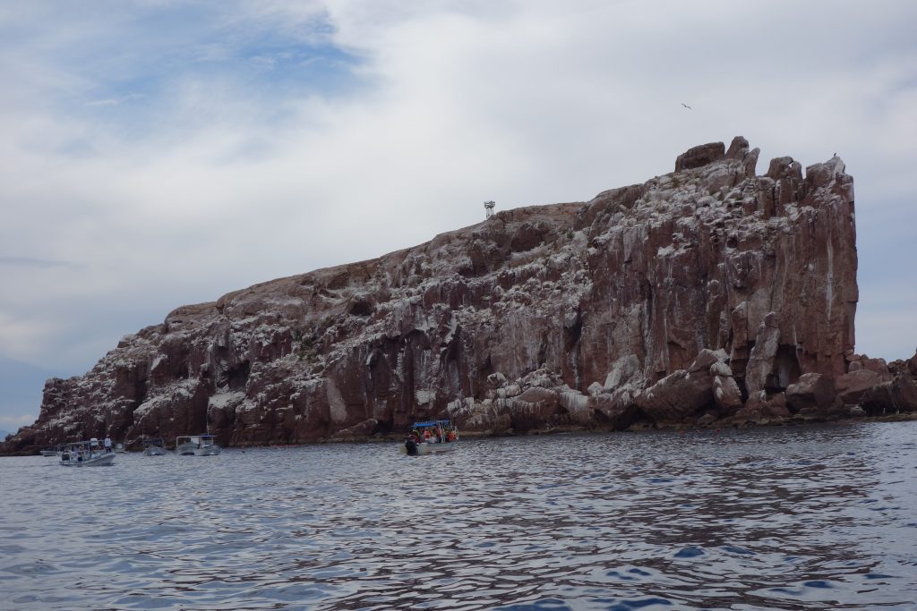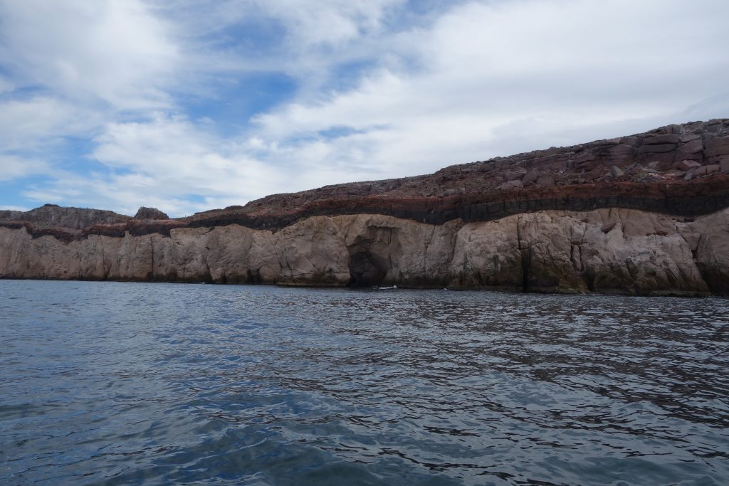 The next day we decided to break the piggy bank and splurge on a boat trip out to Espiritu Santo, one of the must see items for visitors to this part of Baja. Espiritu Santo is a UNESCO World Heritage string of mountainous islands off the coast which feature great secluded beaches, dramatic rocky coastlines and high cliffs with colourful layers of strata running through them. Our target was to snorkel with sea lions and have lunch on a private beach. That sounded pretty good.