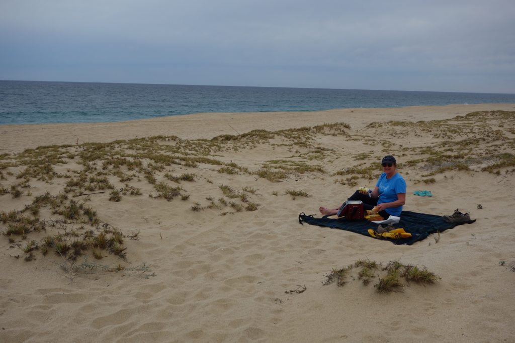 First stop on the tourist trail was Todos Santos, set on the ocean side of the peninsula and less famous than other spots. We enjoyed a couple hours wandering around the historic centre of town but it was completely sanitised and commercialised for visitors, of which most were Mexicans visiting from other parts of the country. The souvenir shops all have the same ceramics, T-shirts, clothes, paintings and traditional dolls. We then headed down to the deserted beach for a picnic lunch amongst the sand dunes, much more our style.