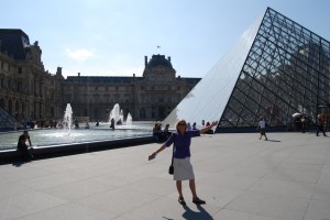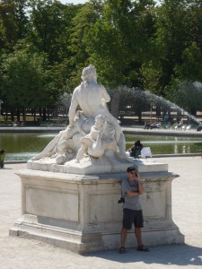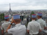 The next day we set a world record for walking in Paris but what a wonderful way to soak in all the charms of the city. So for those who know, a walk from the Hotel de Ville to the courtyard of the monstrous Louvre museum, through the Tuileries Gardens to the Place de la Concorde (off with their heads!), down the tree lined Champs Elysee, possibly the most famous street in the world, the Grand Palais and the Petit Palais, all the way to the Arc de Triomphe. That walk down the perfectly straight and symmetric backbone of the city to me highlights the beauty, history and architecture of Paris. The only slight problem we had was that because we were only a few days from Bastille Day the Champs Elysee was lined with grandstands for their famous parade.