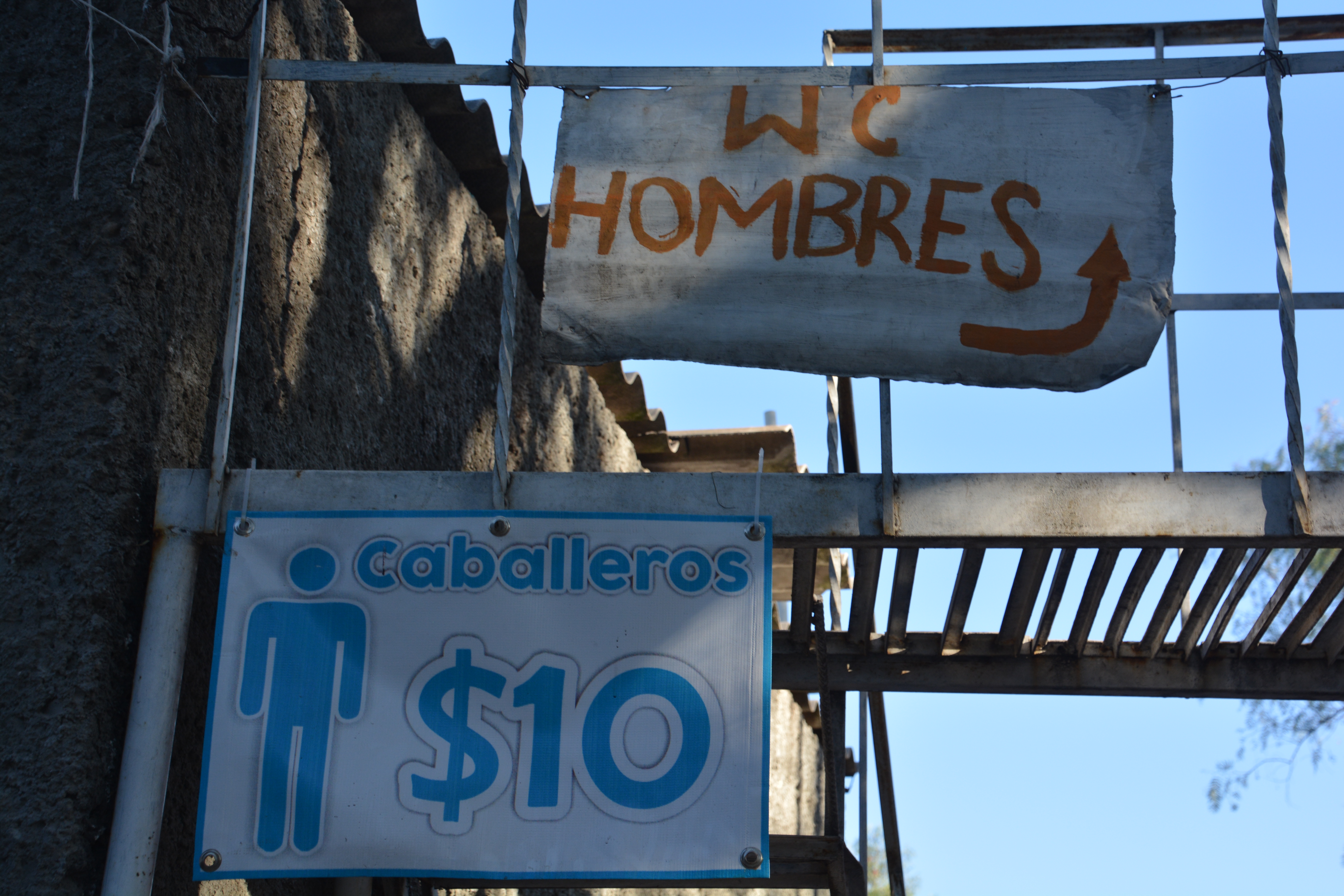 You have to pay for public toilets everywhere you go, even if they are very low standard. Its a bit confusing at first but Mexico uses the dollar sign for Pesos – so this toilet was 10 Pesos, about 50 cents