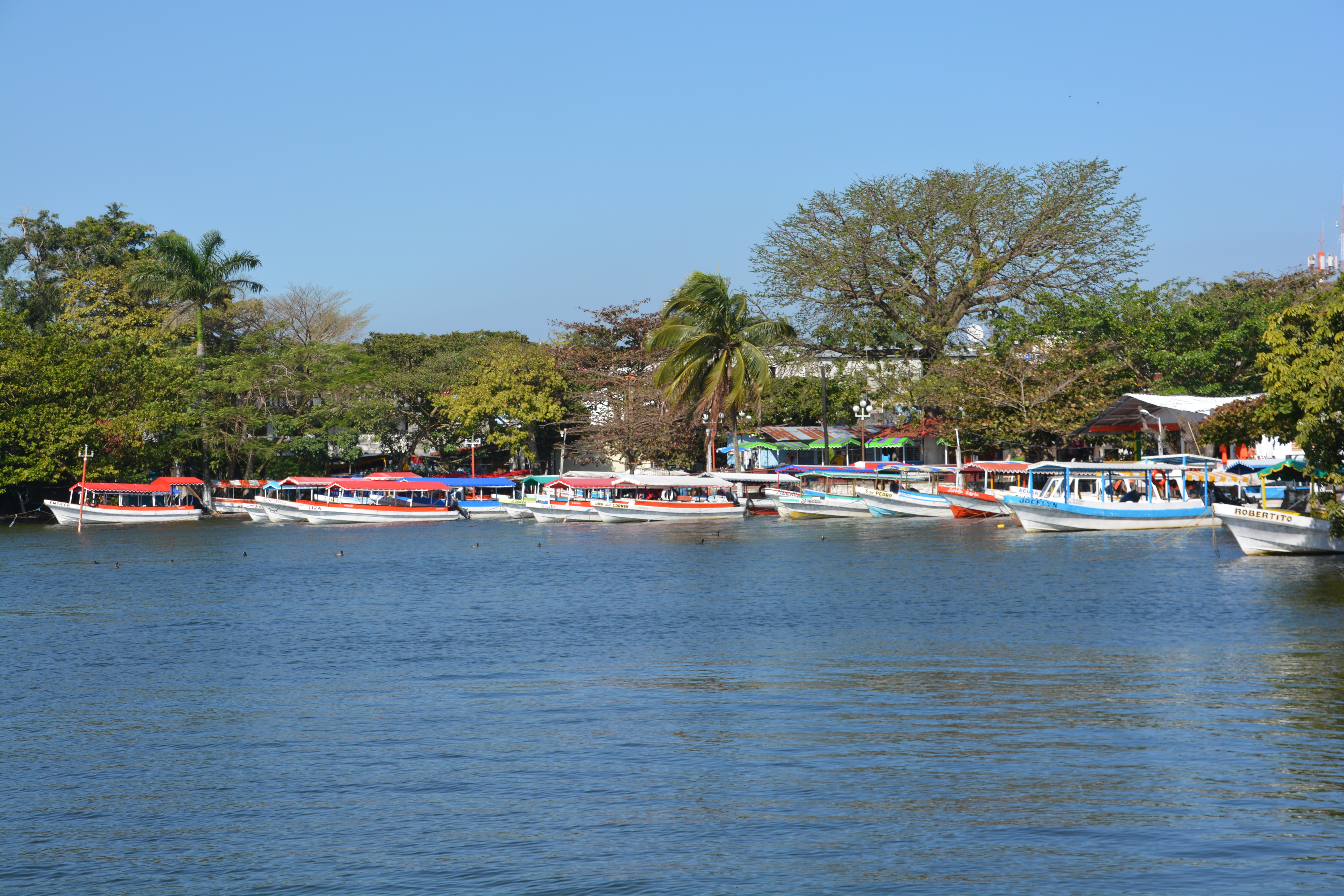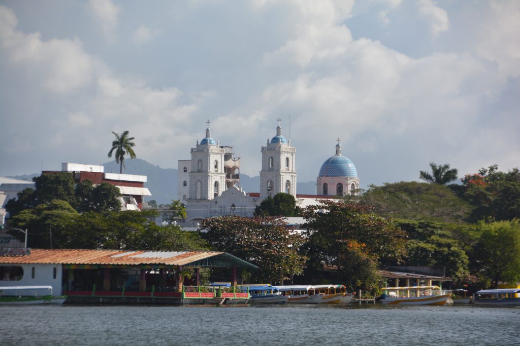 As it turned out, Catemaco was a top spot, an attractive town with a lovely promenade along the water’s edge, a stylish church with a beautifully painted interior and our first real stained-glass windows. We bought a few supplies and took in the whole scene while the town was opening up for the day.