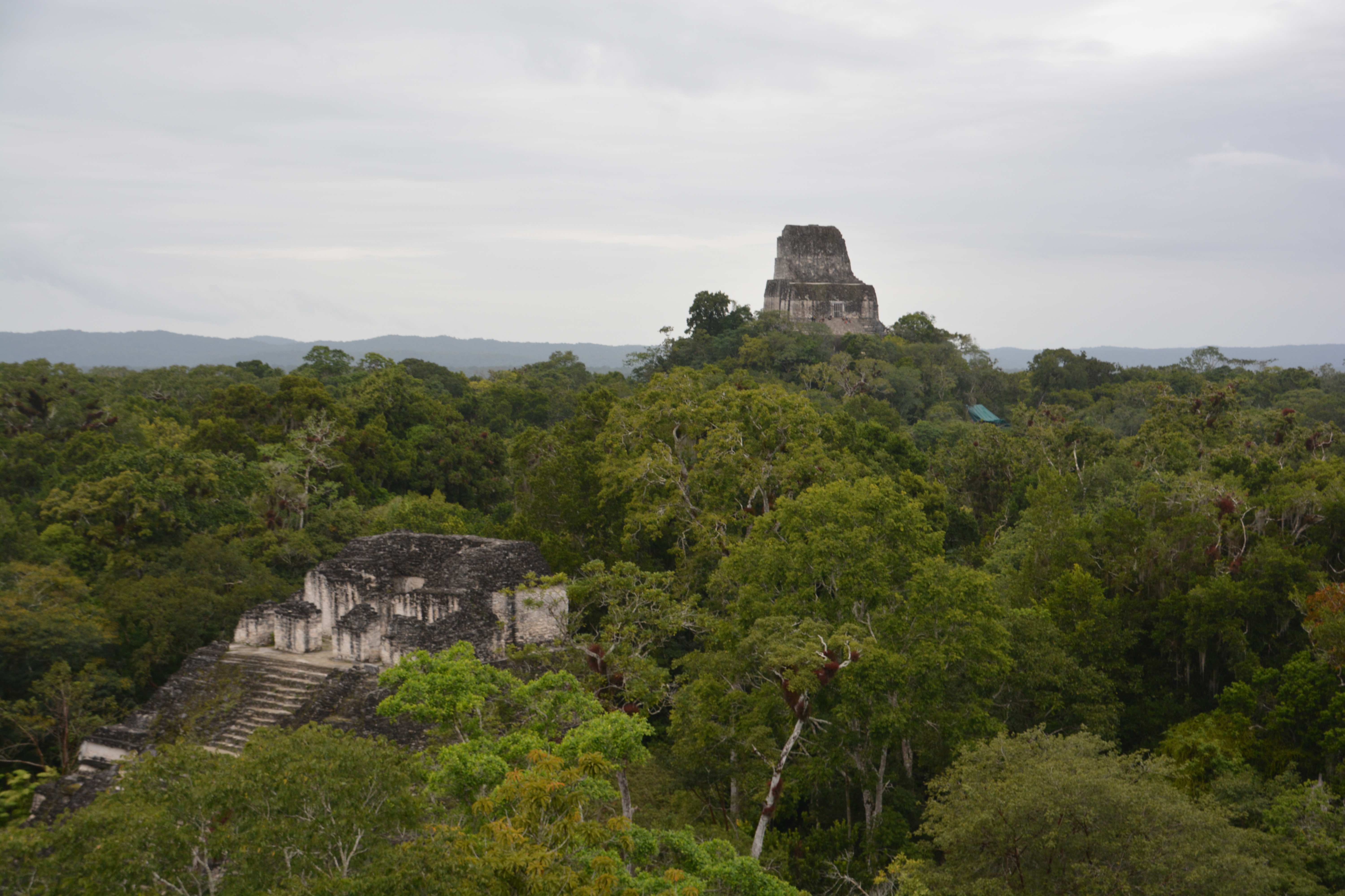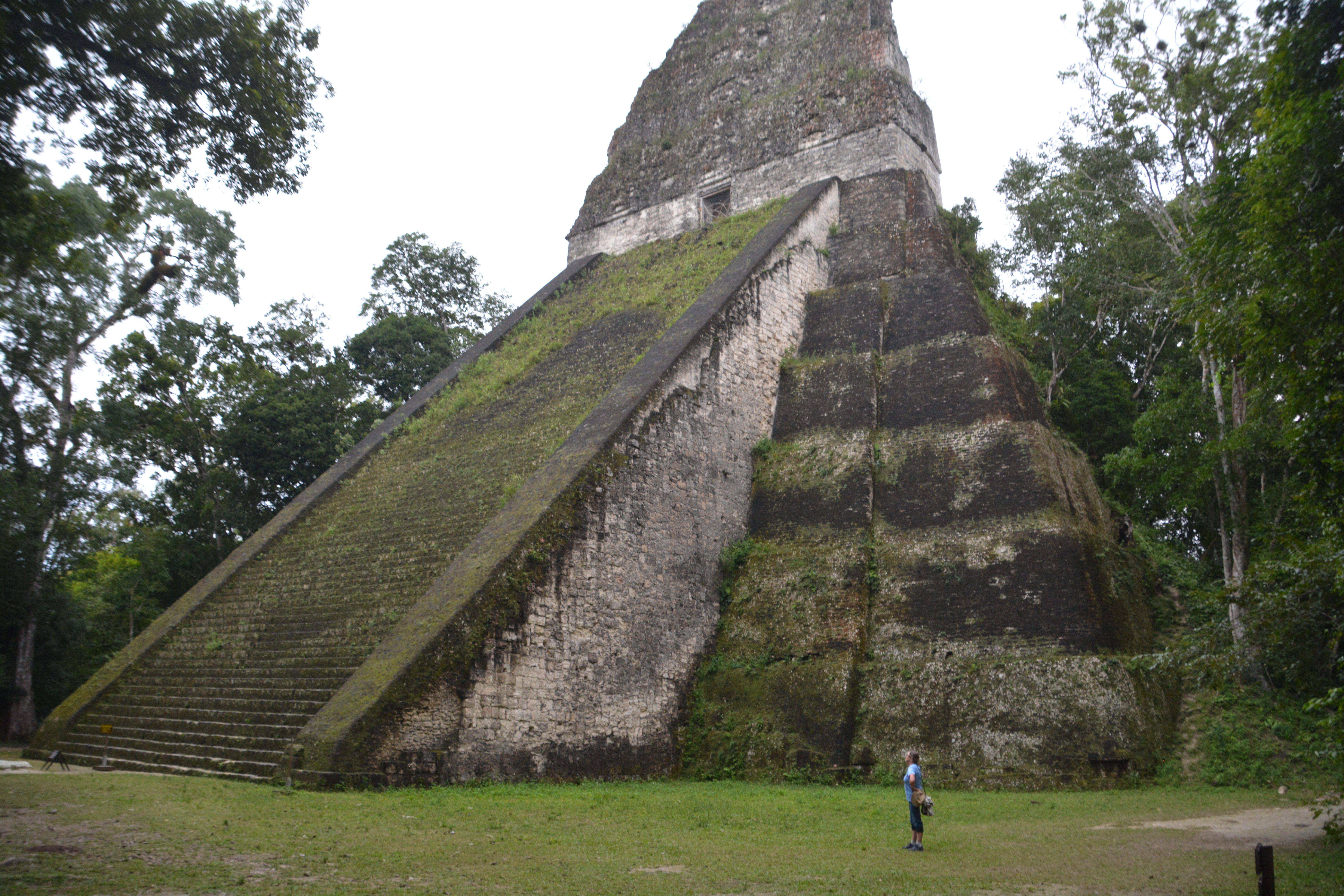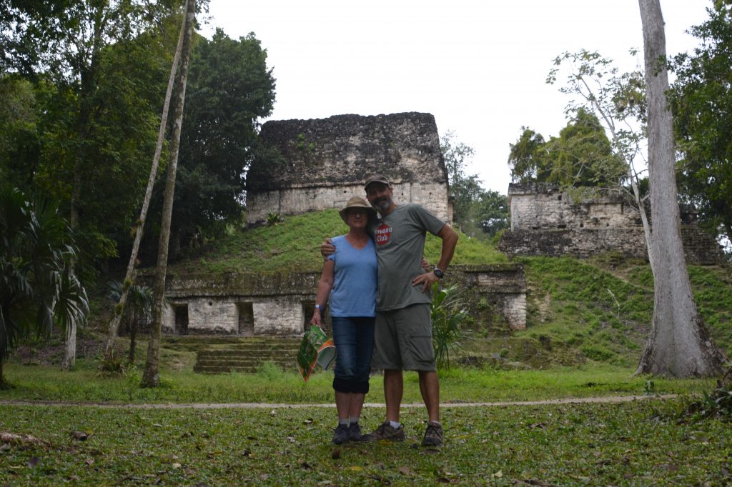 The Guatemalan countryside opened up to us as green rolling hills with cattle sometimes seen grazing in nearby paddocks. The villages lacked any graces, mostly muddy tracks leading to very modest homes, some with the traditional Mayan thatch roofs. We headed west, then north, our target the famous Tikal ruins, one of the extensive and significant Mayan ruins in Central America.