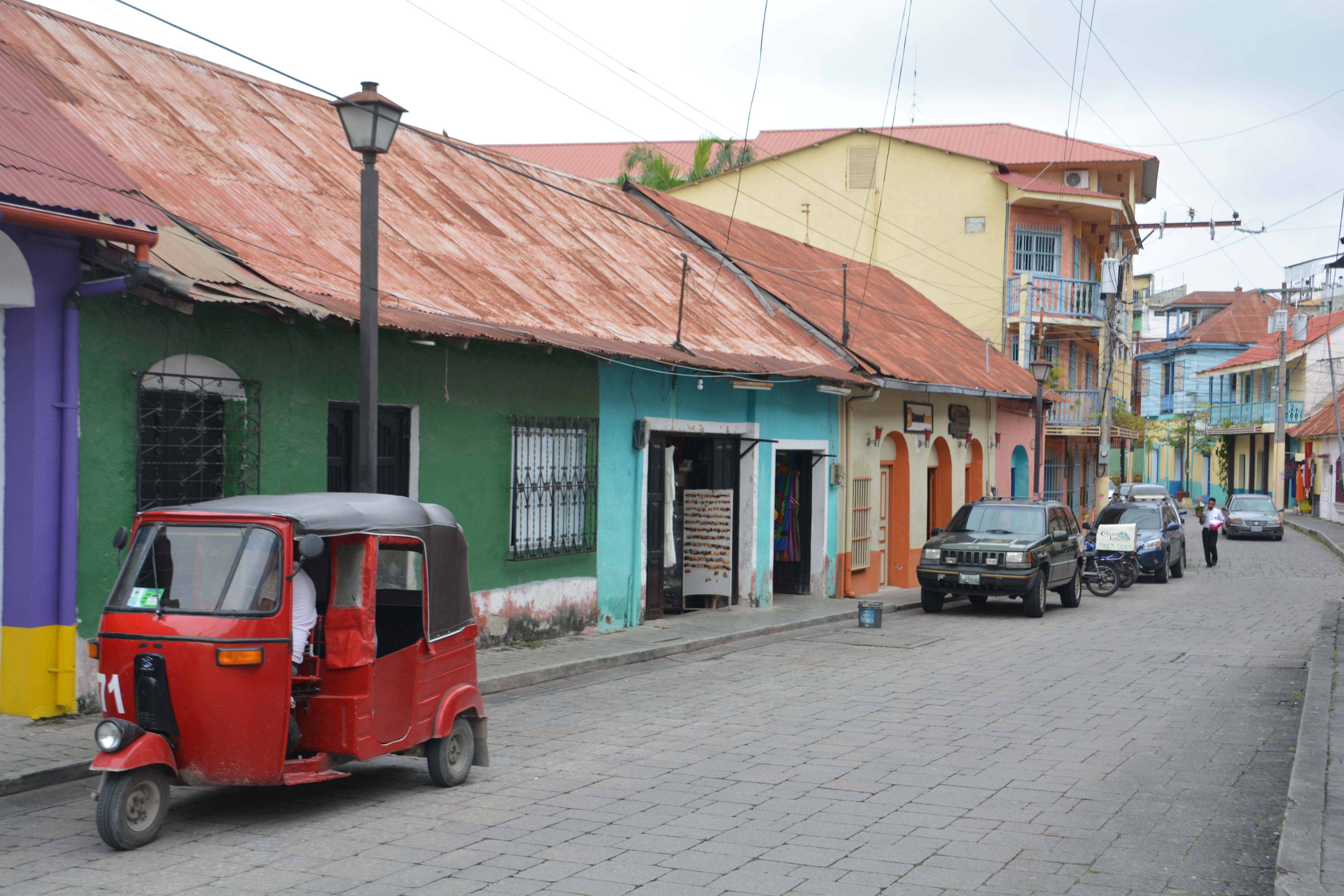 The next morning we headed south to the picturesque town of Flores which covers a little island on Lake Peten Itza, connected to the mainland by a 500 metre causeway. We spent some time wandering its narrow cobblestone streets with its old brightly coloured buildings, enjoying all the red tuk tuks that took us back to Thailand and soaking up the picturesque scenes that surrounded us. Flores is very cool.