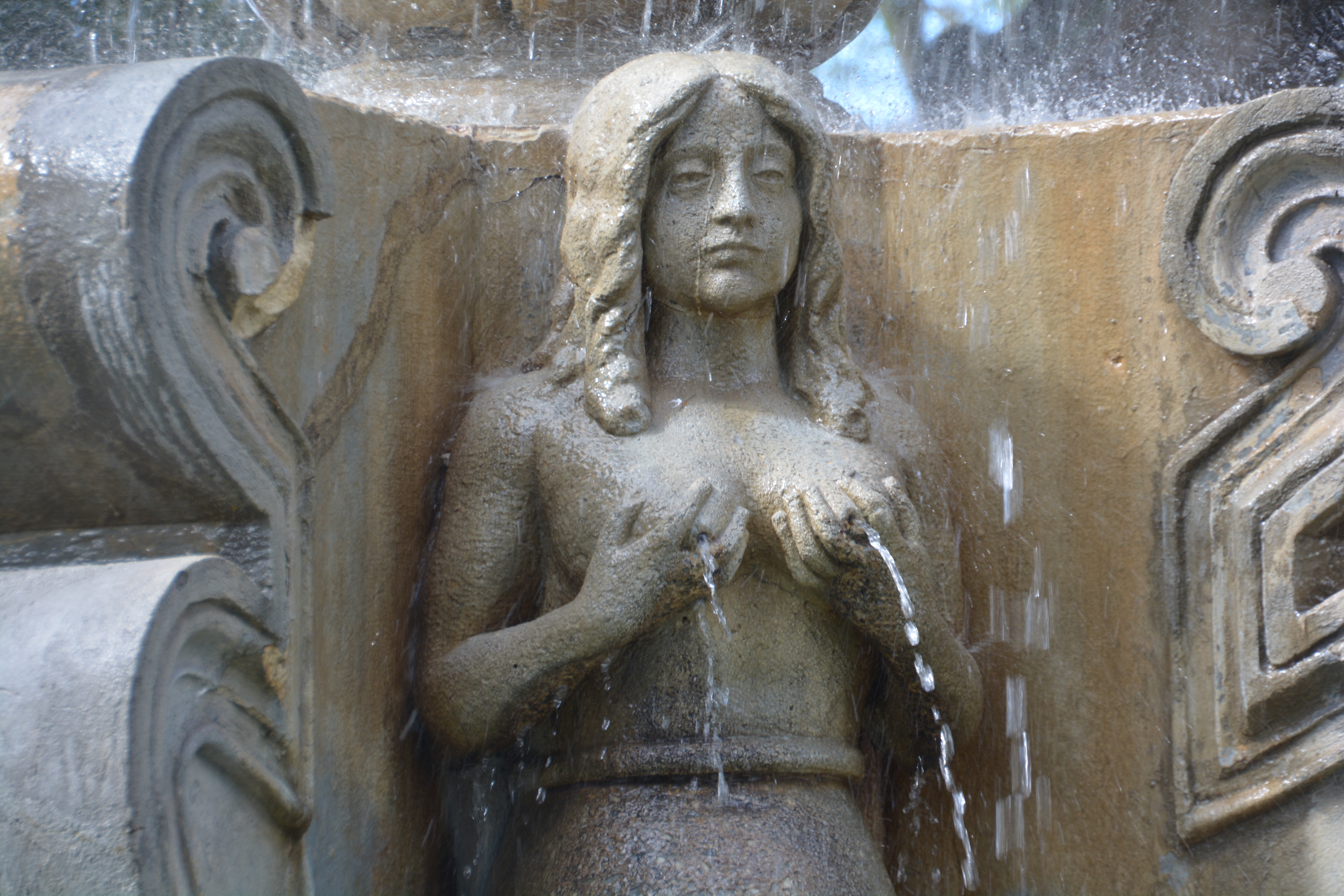 Okay, this fountain is a little unusual, mainly because it is the only one we’ve seen lately with water in it