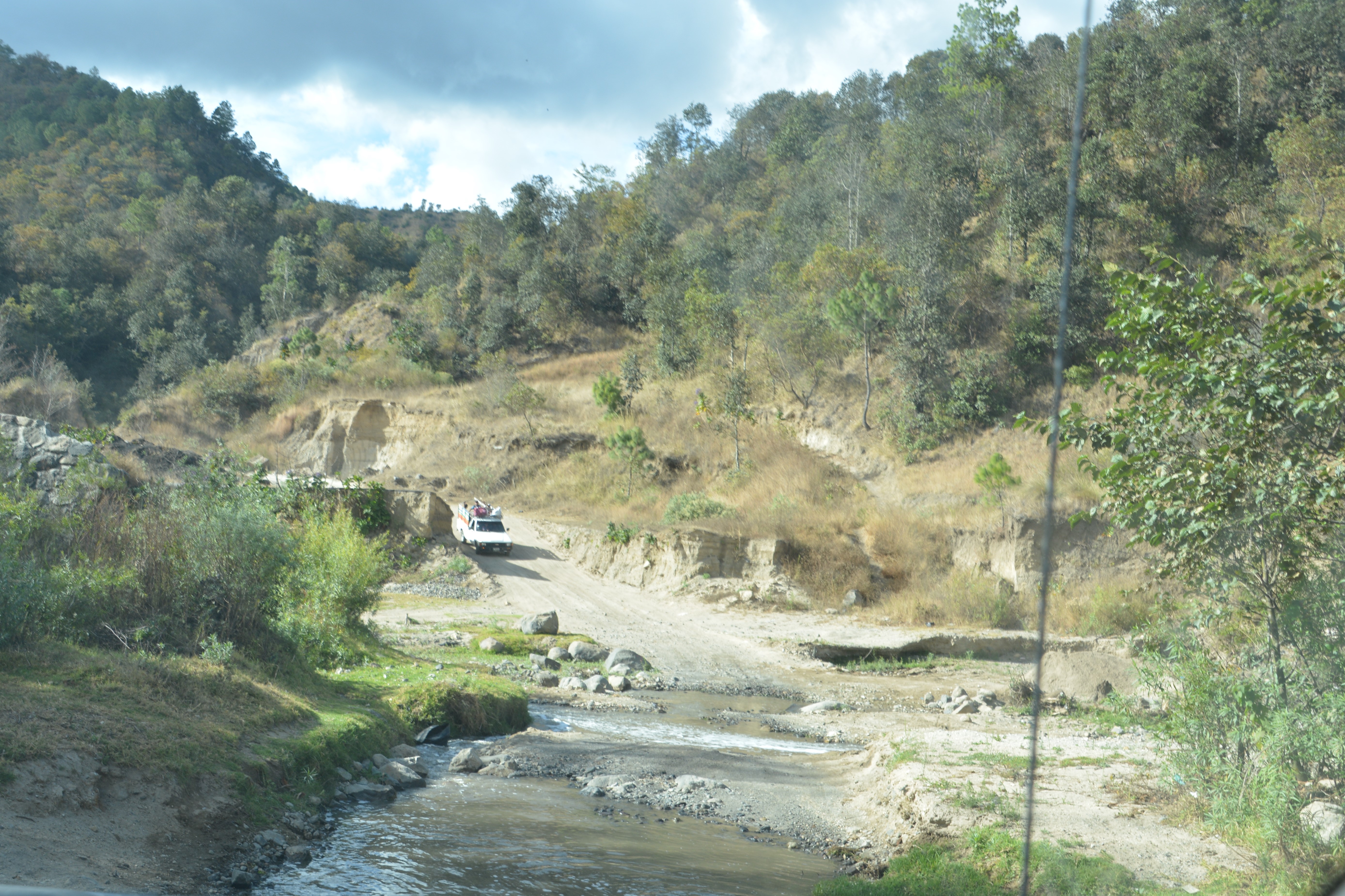 A crazy mountain road led us along steep mountainsides and through some beautiful country but also across this creek after the bridge had been washed out