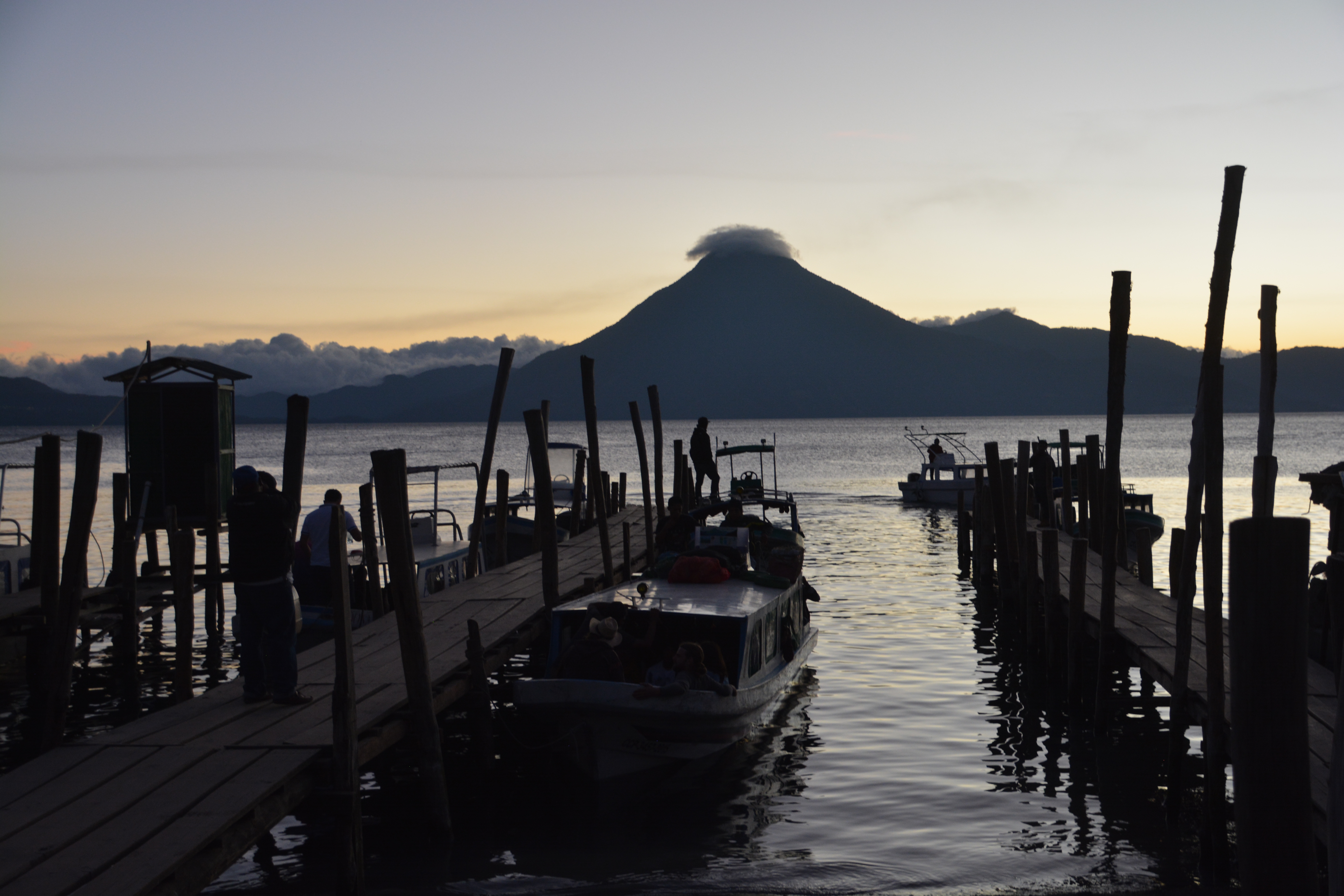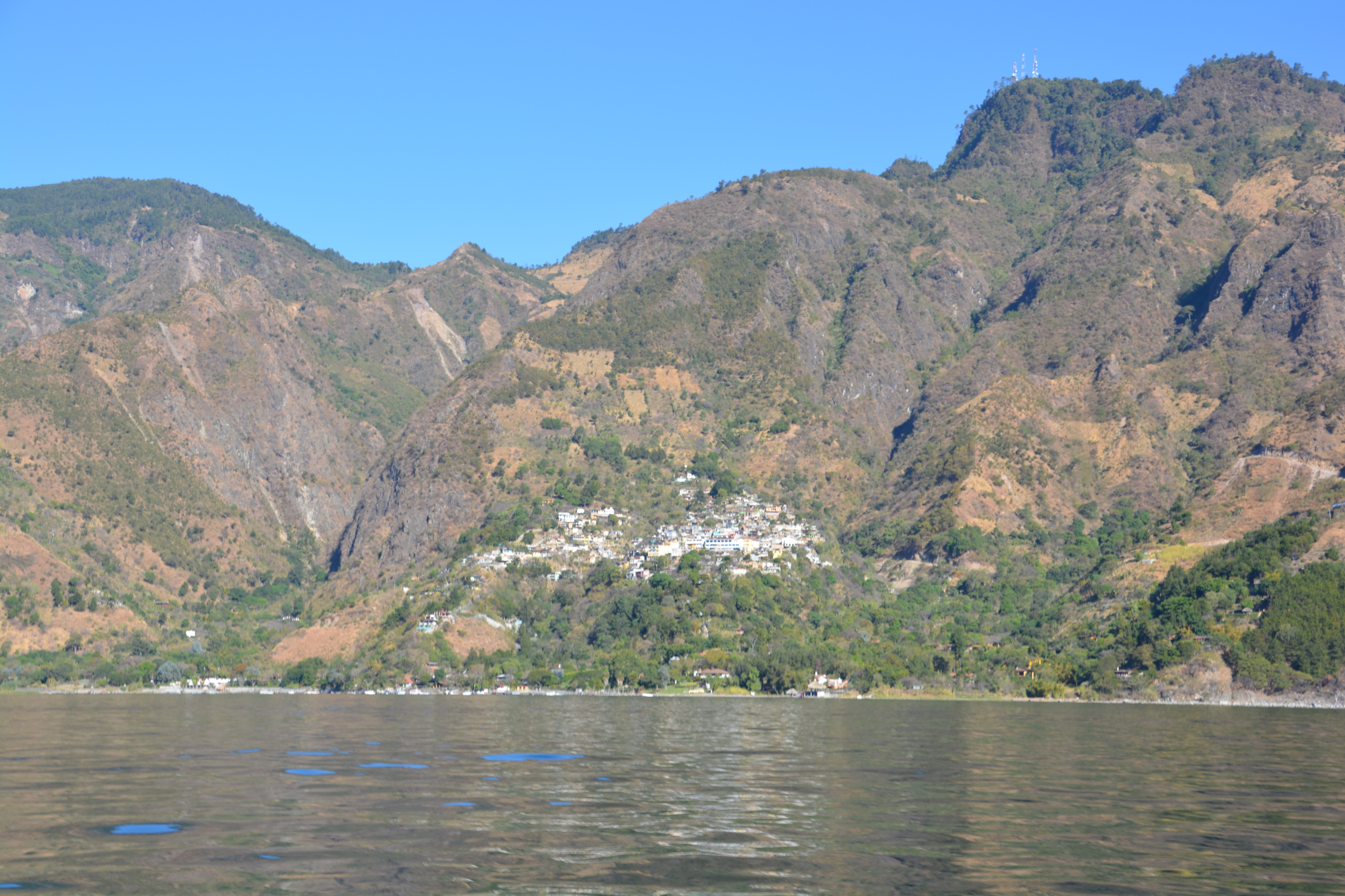 But the star of the day was the lake itself, its clear water a reminder to my youthful days at Lake Tahoe, its towering mountain slopes providing scant room for people to build their homes, let alone grow crops up the steep mountainside, and above all the three huge volcanos looming over our heads the whole day. Very cool stuff.