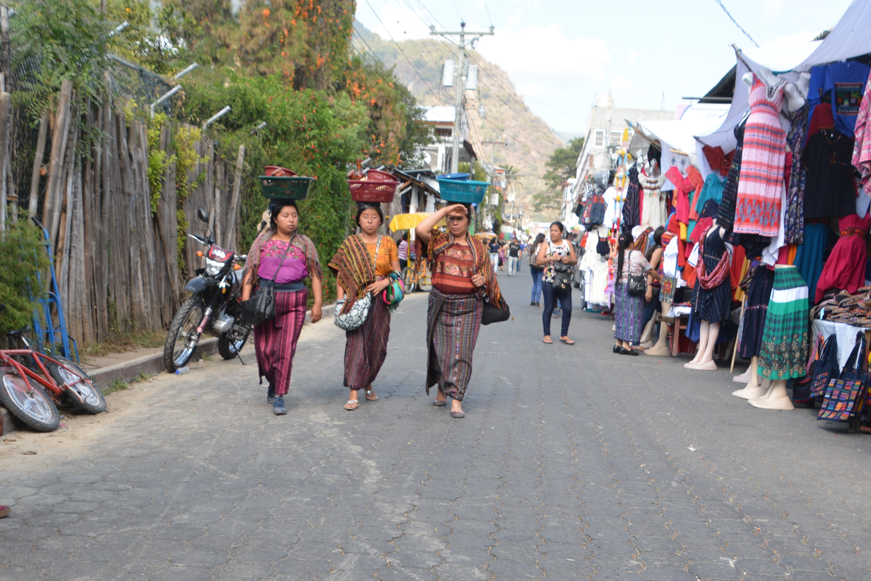 We arrived at the rim of Lake Atitlan to gaze down on its blue waters with three huge volcanoes surrounding it. No wonder this is a popular place to visit for Guatemalans and foreigners – the views were stunning. We drove down the narrow road to the town of Panajachel where we camped for the night in a friendly car park and enjoyed the colourful souvenir shopping, bars and a restaurant of the town.
