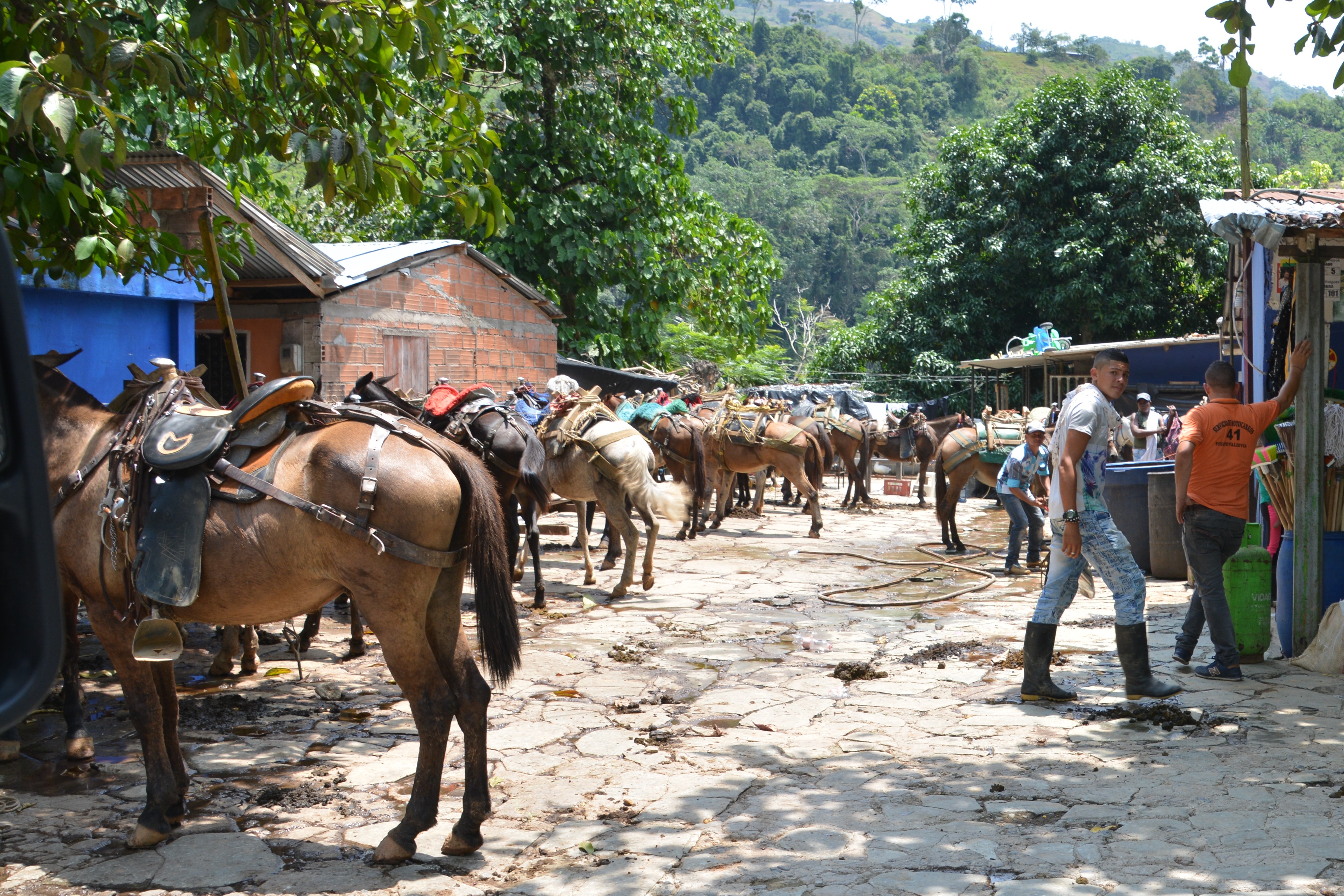 For a couple of bucks we had these three kids wash Tramp until he sparkled in the Colombian sunshine