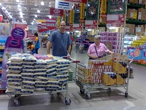 Sister Joan is an amazing woman and her energy and commitment to the people in her slum community is boundless. Through various circumstances she recently needed some help in her fortnightly shopping to feed about 90 elderly women that she has on her books. Julie and I joined her at one of these giant warehouse stores and bought 420 kilograms – almost half a ton – of rice, hundreds of cans of tinned fish, equal hundreds of fish sauce plus various other items, loaded them into her truck and sent her home to feed her extended family. I was exhausted by the effort, she seemed to take it all in stride (forgot to mention, she’s almost 80).