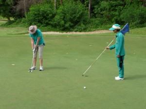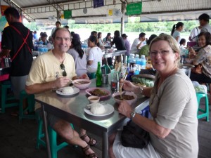 Let me tell you, what a success! We found a little 9 hole par 3 course north of Bangkok and had a real hoot playing golf together. The holes were short but there was a lot of water and bunkers to negotiate (she found the water, I found the bunkers) so it was no pushover. The good news (for me) is that I beat her, the even better news is that we had a great time. Julie hit many good shots and even had a true proper legitimate bogey (plus an almost legitimate double bogey and many other good holes). The caddies didn’t giggle at her bad shots but they did clap for the good ones (probably hoping for a big tip). So overall, a great success.