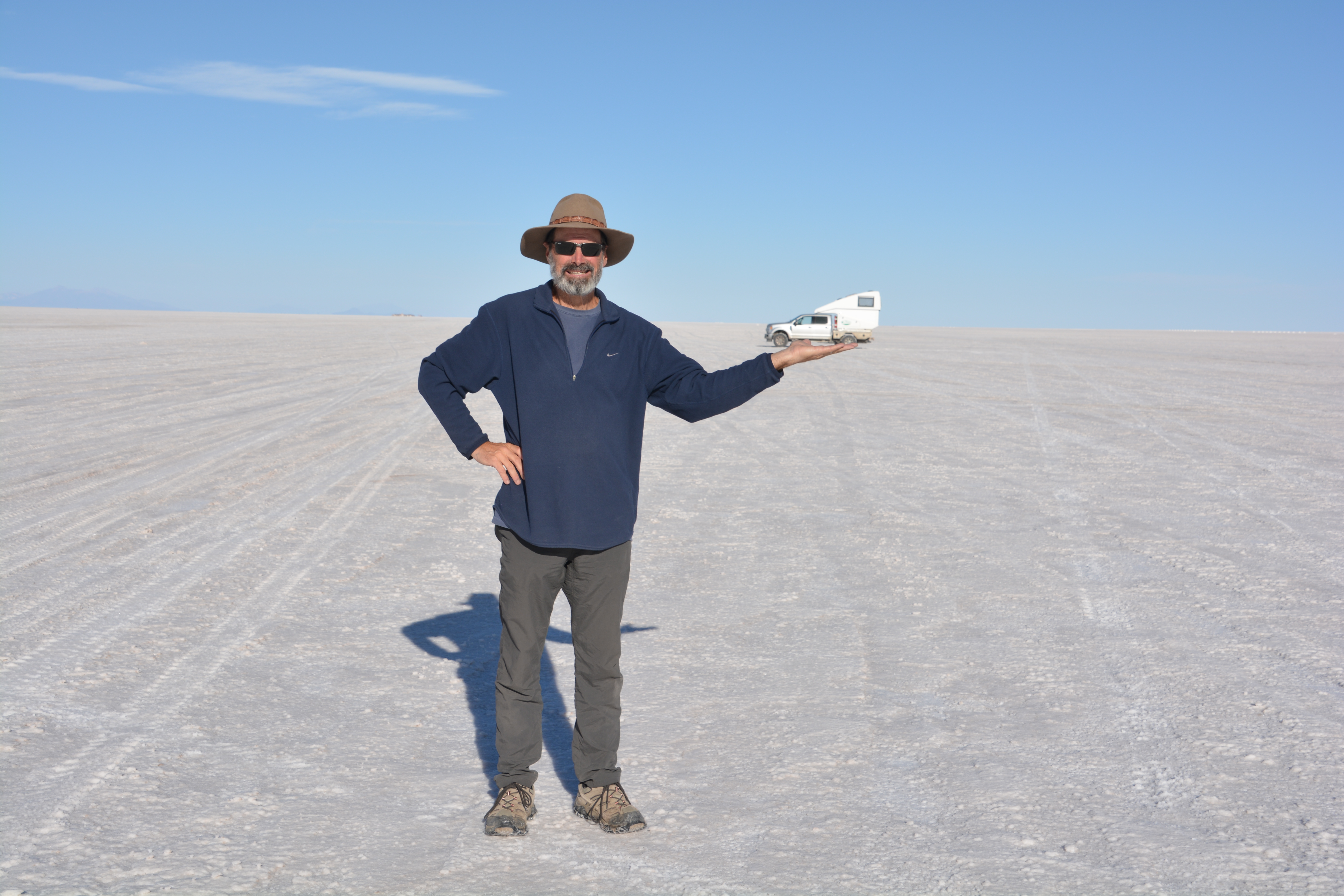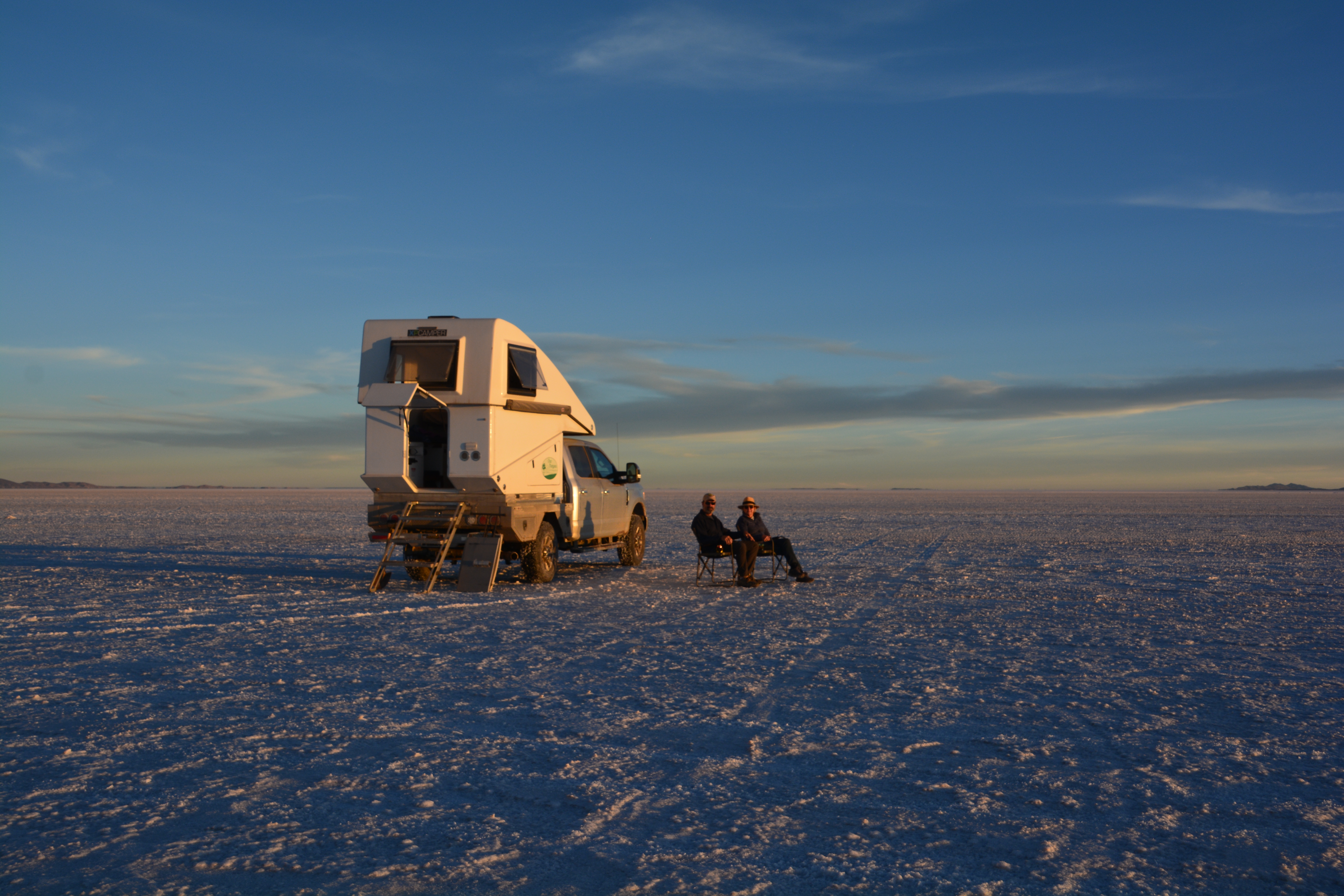 I bet you had a hard time finding a good camping spot on the salt flat, but it looks like you nailed it.