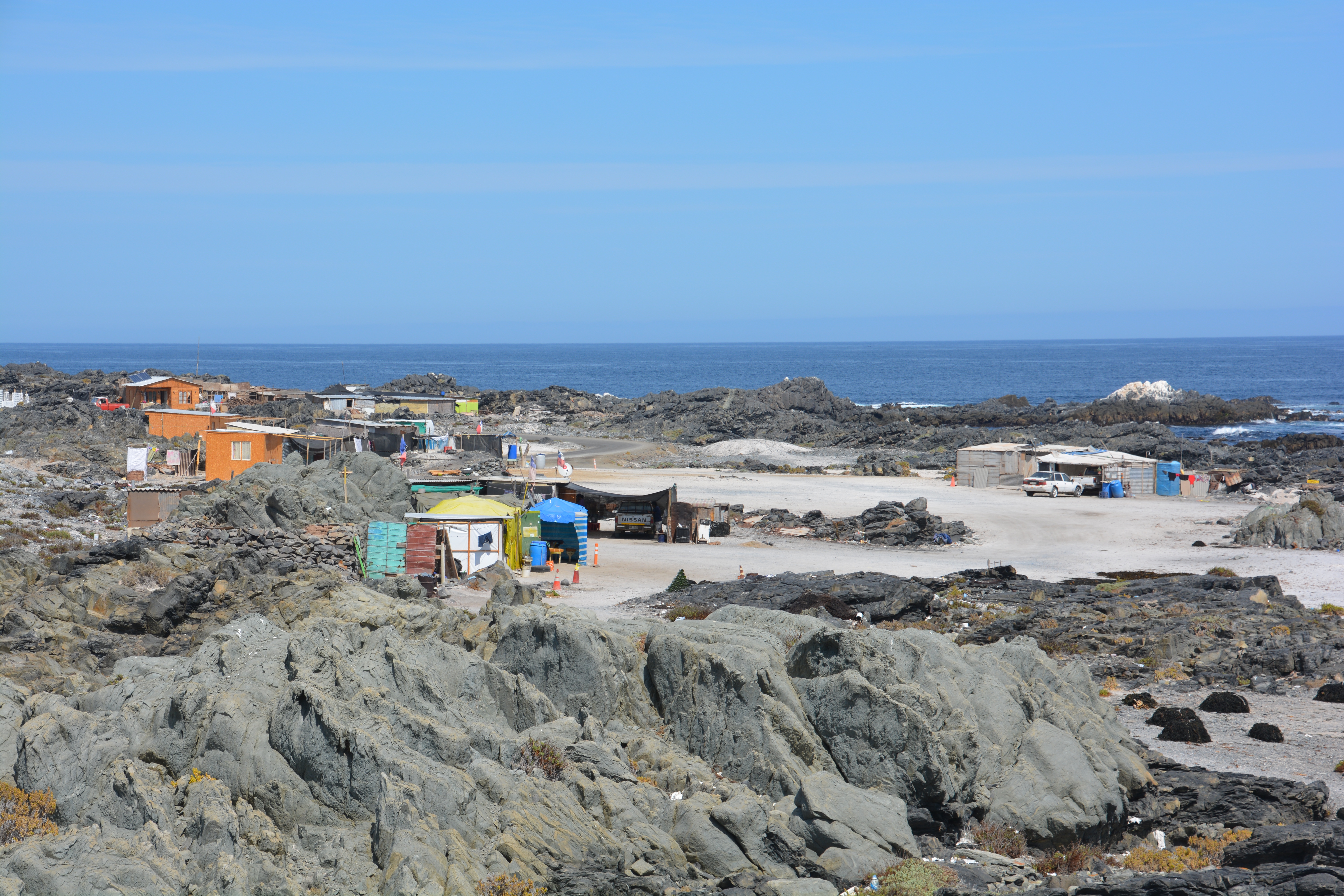 The road eventually veered inland and we made good time on the four lane divided highway. South of Copiapo the desert started showing signs of life, some bushes, a little green, even a few dry river beds. We camped that night in the middle of the desert, stars blanketing us following the orange sunset, even collected enough scrubby wood to have a small fire. As the locals would say, muy tranquillo.