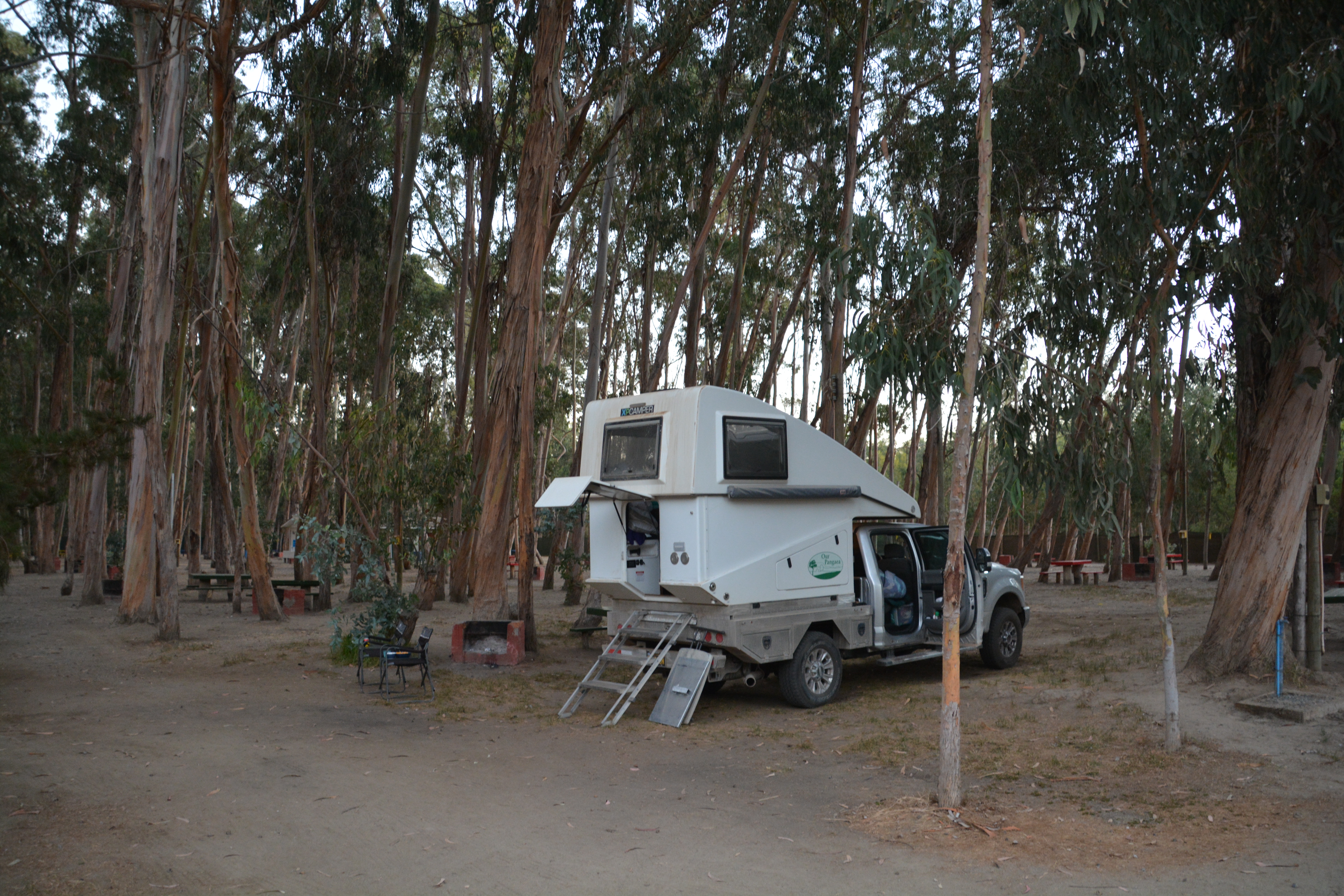 By visiting a hardware store and applying drills, saws and hammers we managed to get the top of Tramp’s camper to move up and down, albeit manually. So while we were in long distance dialogue with the camper guys in California on how best to provide a permanent fix to our problem at least now we could use the camper and we knew the show must go on.