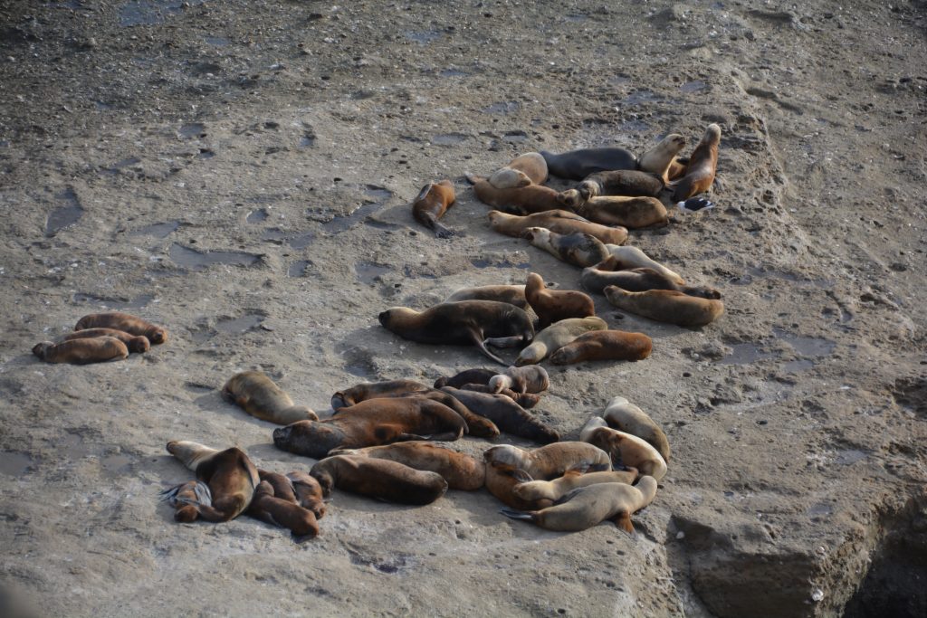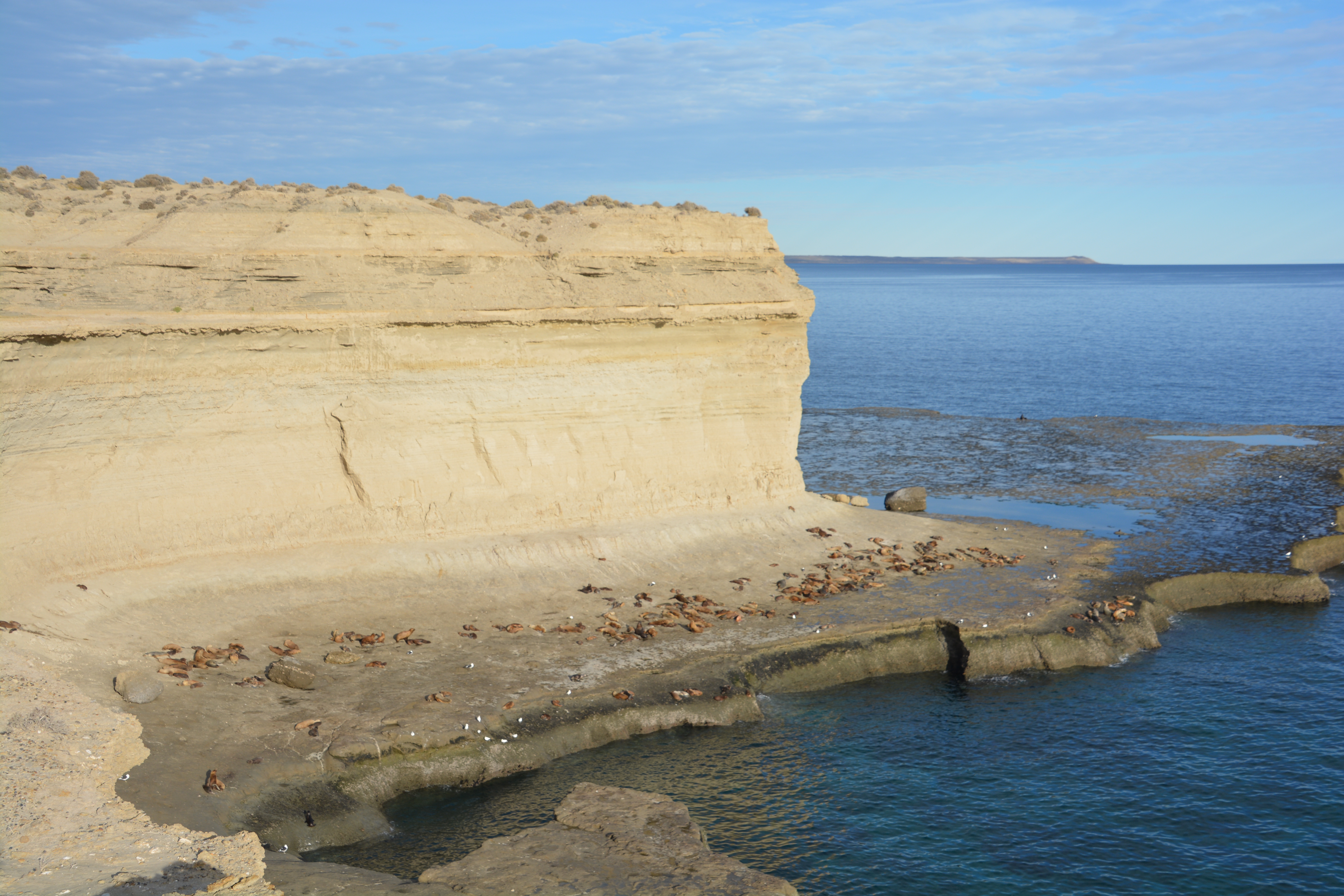 The white cliffs of Peninsula Valdes featuring hundreds of lazy sea lions enjoying the afternoon sun