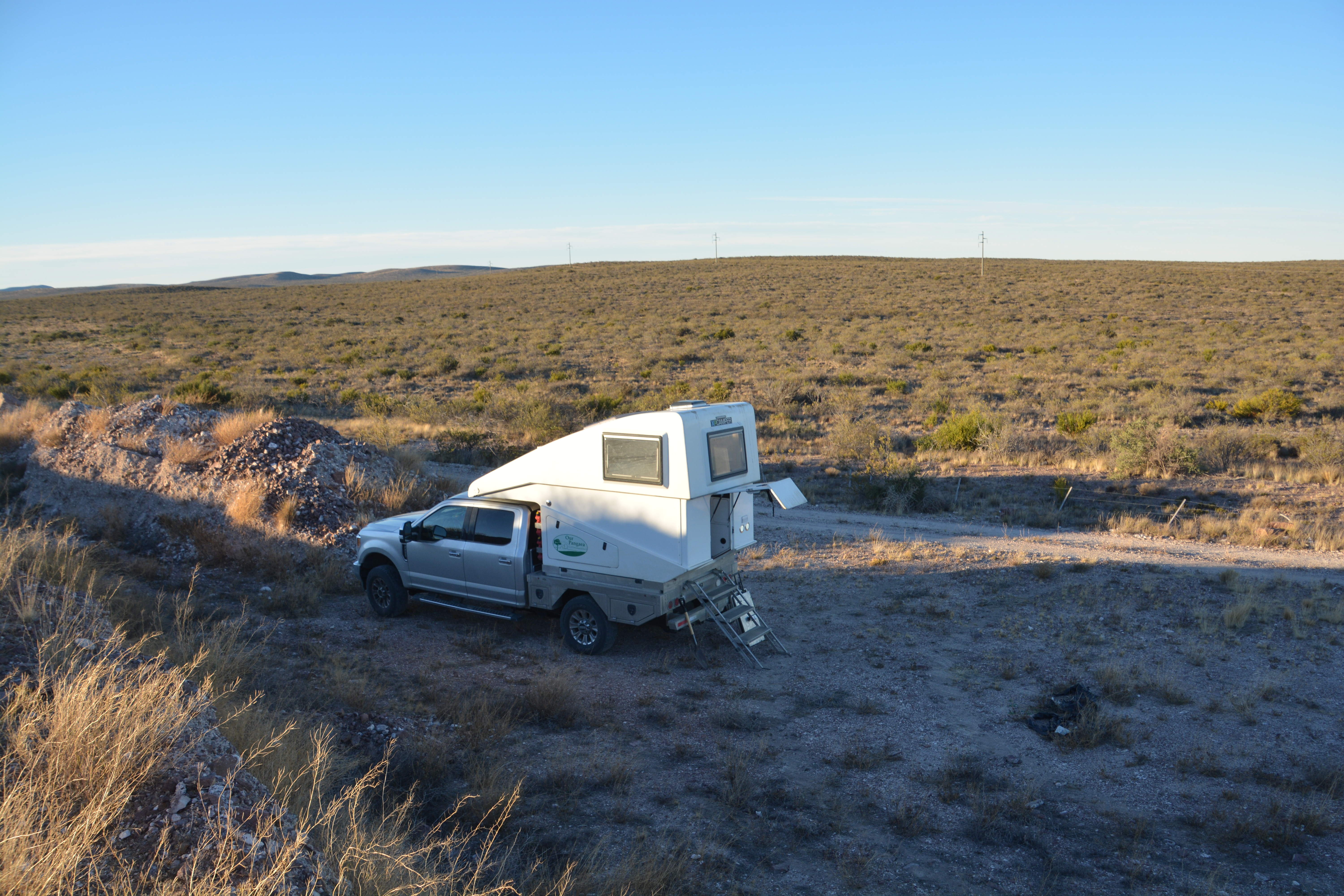 A small hill next to the road in the middle of endless flatness was a good place to camp for us to be sheltered from the road for the night