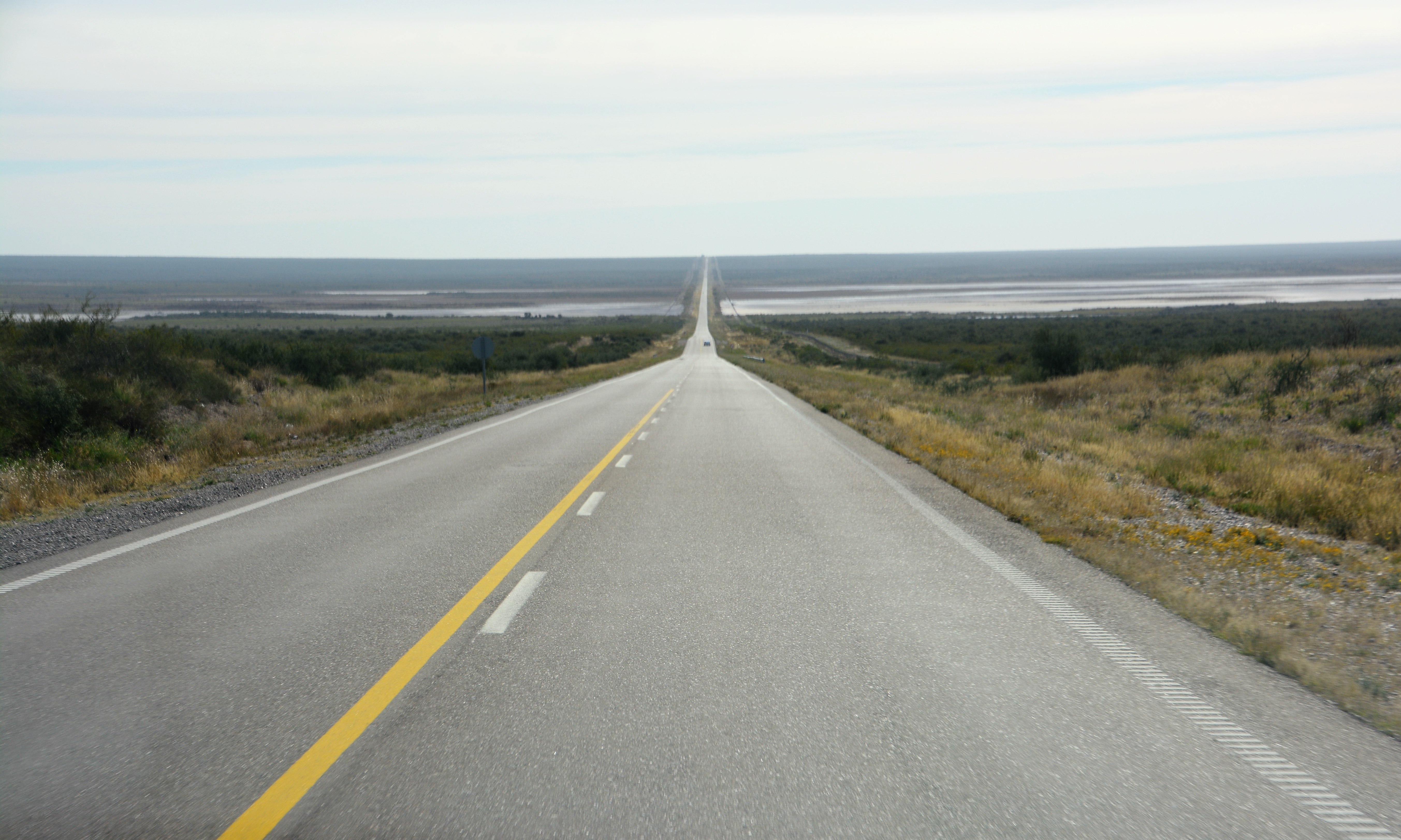 The roads were high quality and salt lakes occasionally appeared on the horizon but the long straight road just kept giving