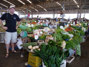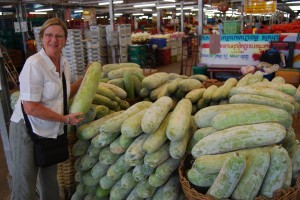 Julie and I had an absolute blast, as we always do in any market, but more so because this place was so BIG. Different buildings or covered areas would have different goods, as shown by colourful pictures above their arched entrances. We started with the vegetables and I couldn’t do the list justice but they would each be sold in their own designated area so we started with corn, then watermelons, then onions, garlic, ginger, tomatoes, cucumbers, cabbage, colourful dragon fruit, star fruit, limes, different parsleys and many others we either didn’t know what they were or there were too many to remember. But let me say that each item may have many different varieties and most we couldn’t name anyway.