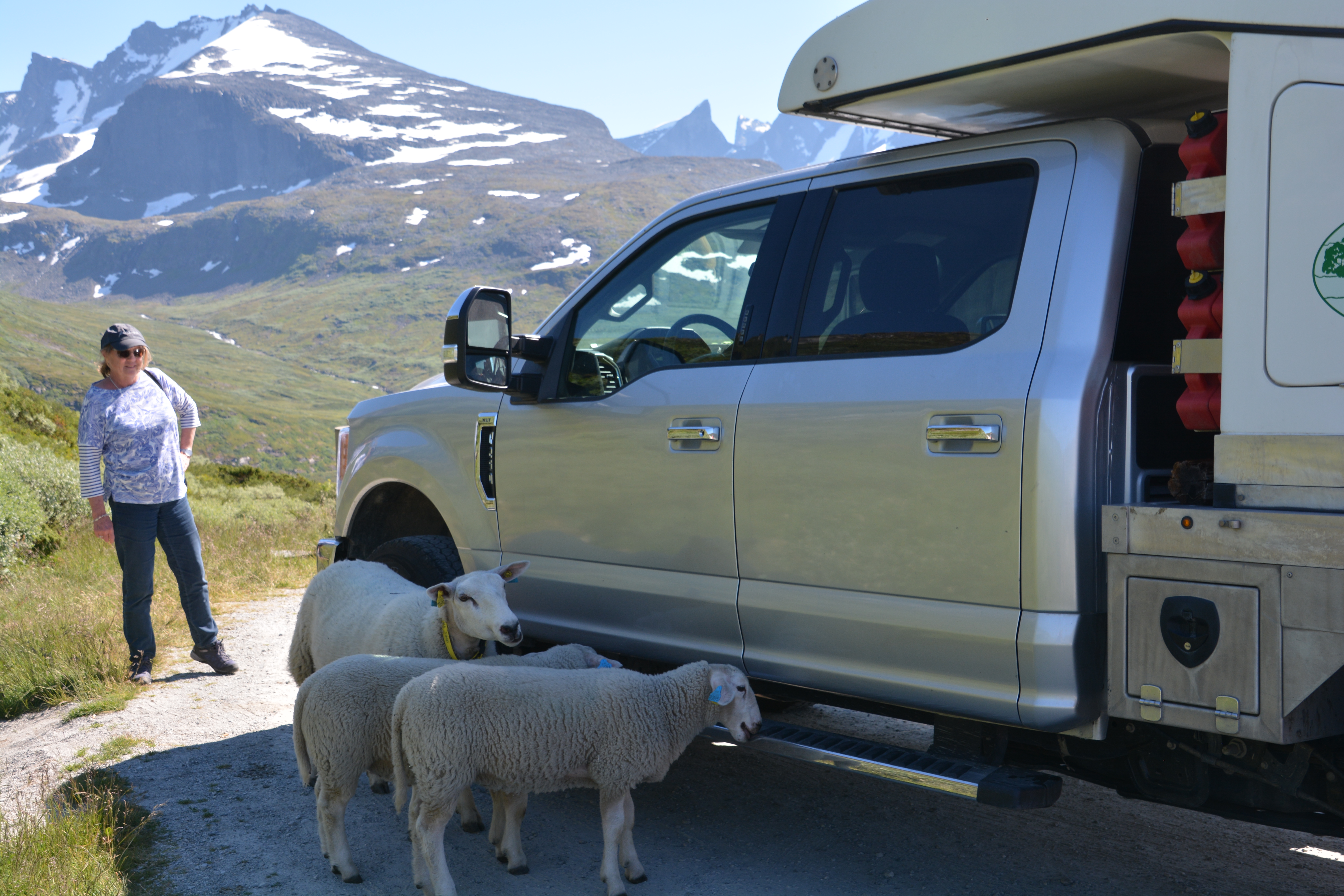 Okay, this is kinda weird. When we came back to Tramp after a short walk these sheep were licking his running boards.