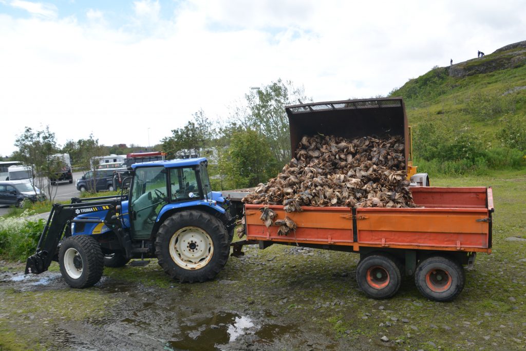 Cod heads out to dry in the sun – they are dried after the rest of the fish is dried and packed away
