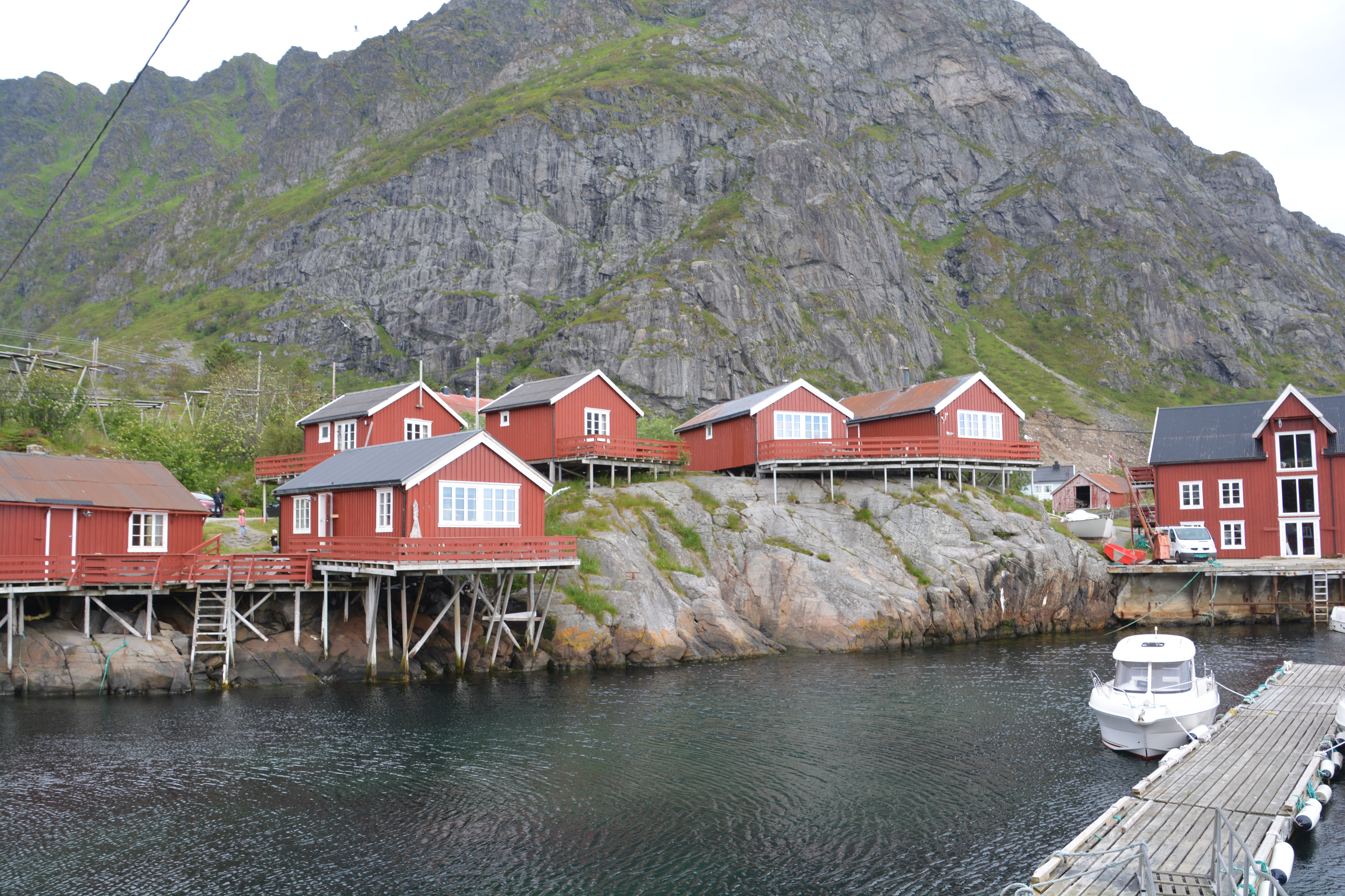 We had caught the ferry from the town of Bodo on the mainland to the small port town of Moskenes and the next day made the short drive down to the end of the road on the last island at a town called A. That’s it, just the letter A. The Norwegians get fancy and put a little circle like a halo above the A but basically this town only has one letter. So immediately we thought it was cool. Like most communities on the islands, its origins are all about fishing and they’ve retained a number of historic buildings dating back to the late 18th century. The mountains which tower over the town still showing patches of snow and create a dramatic backdrop to this picturesque little town.