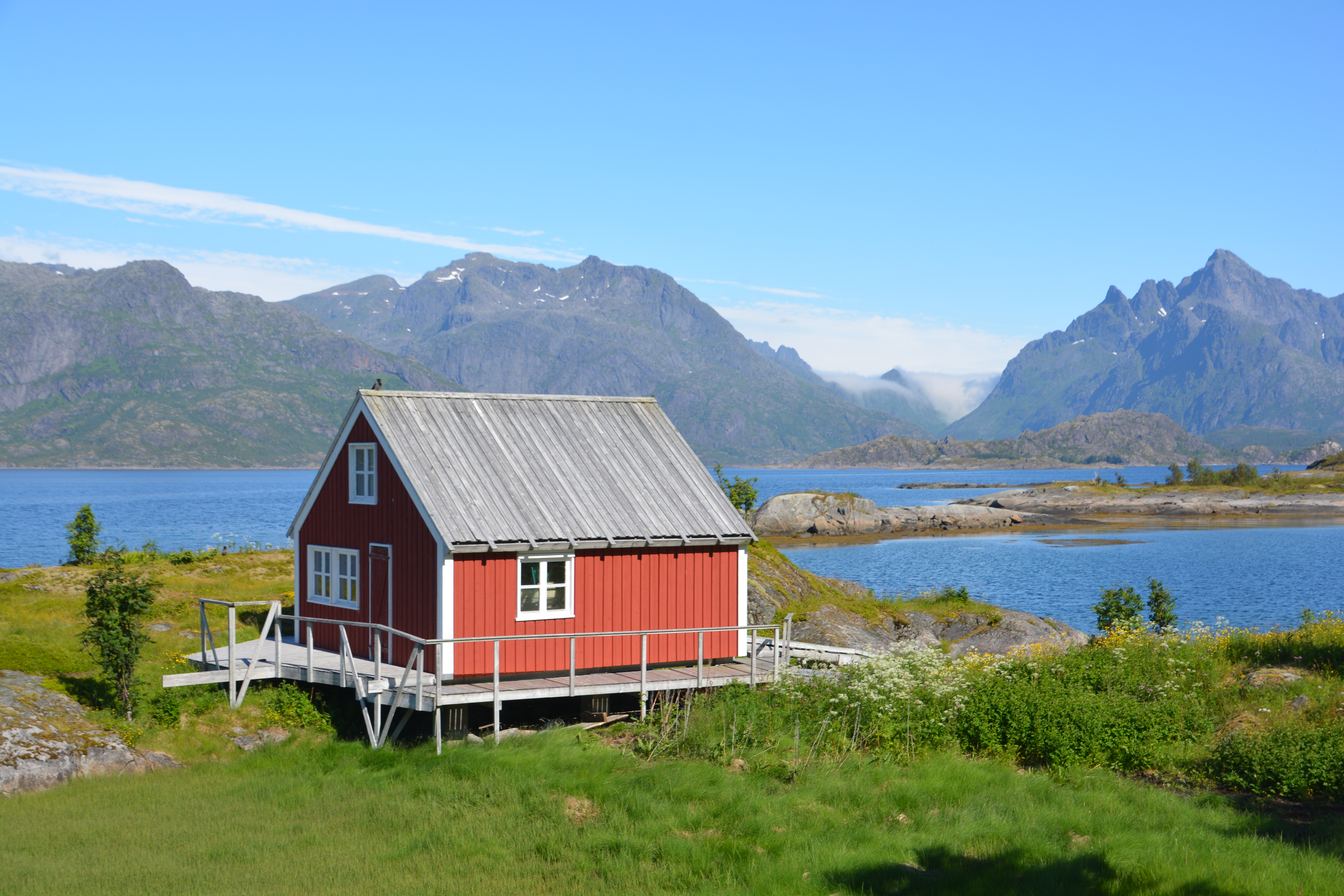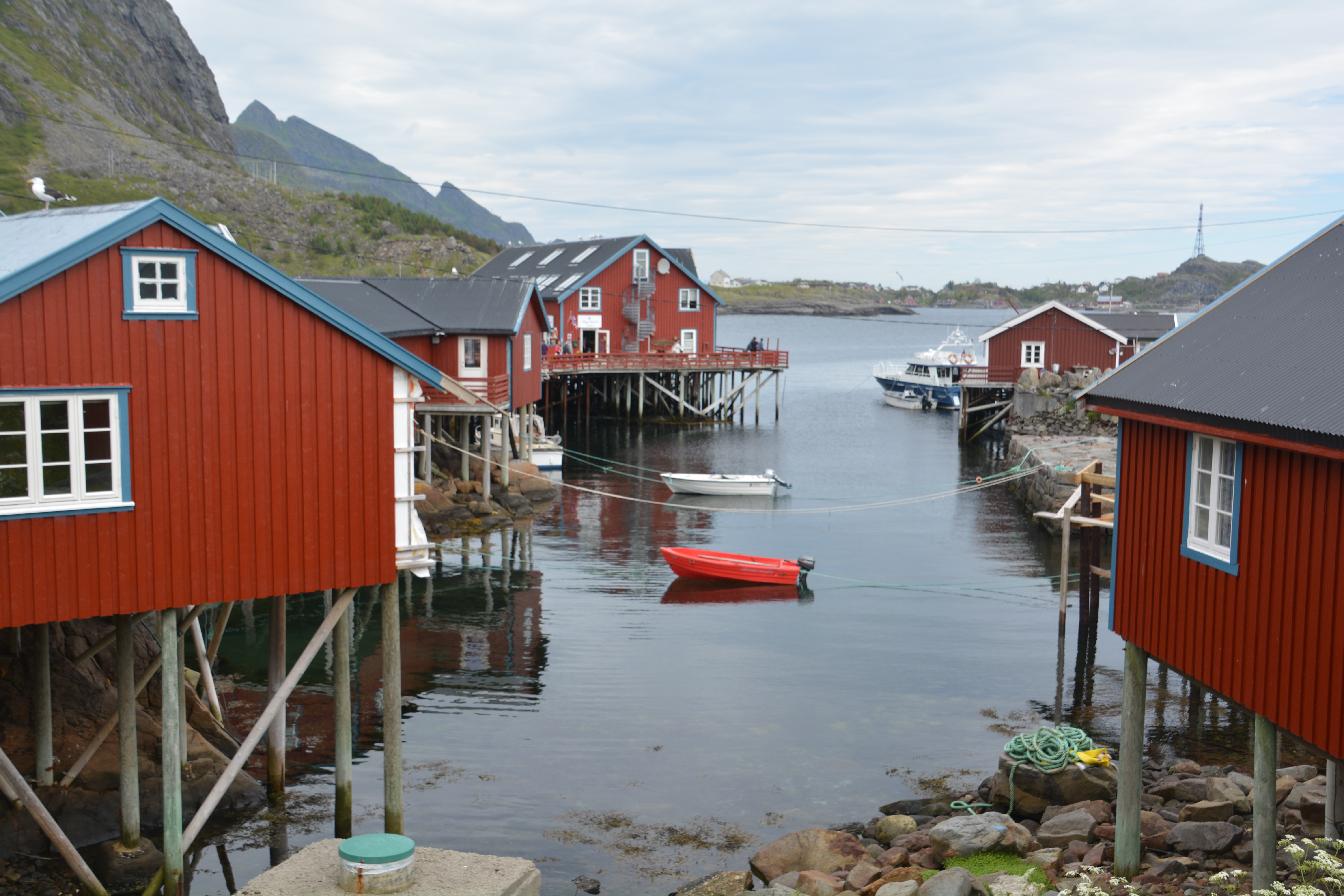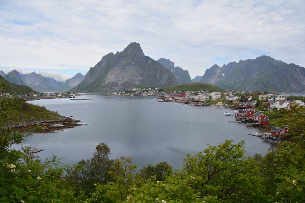 But as cool as the fishing villages were, and as unique as it was to see thousands of cod (or cod heads!) drying in the sun, the real star of the Lofoten Islands was the mountains, huge vertical granite creatures casting shadows and attitude over all else. The town of Reine was a particular example – picturesquely set with its red and white painted houses at the end of the Kjerkfjorden Fjord, its jagged skyline and sheer walls acting as a magnet for all passing eyes.