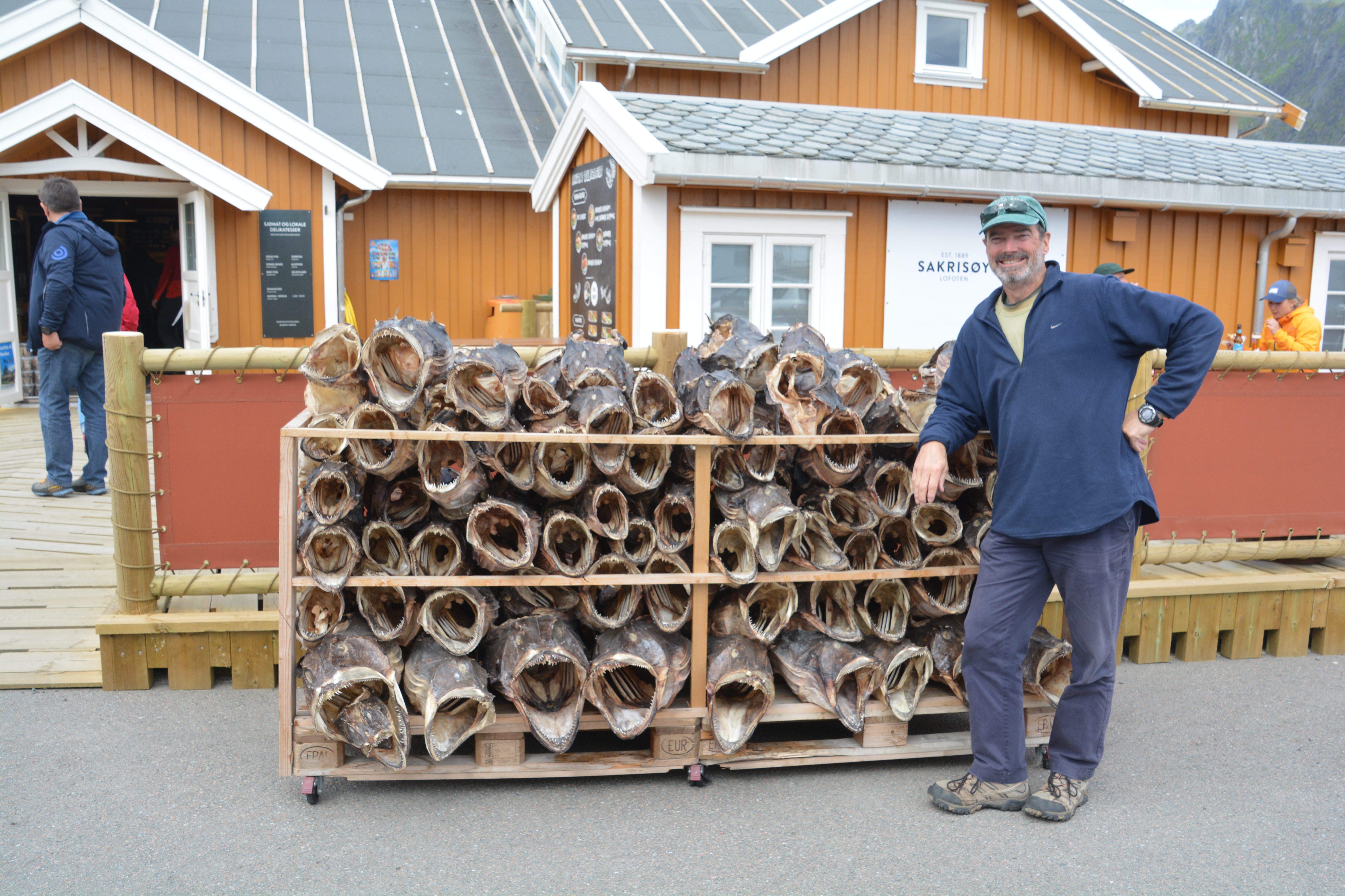 To be honest, Julie and I didn’t know too much about the cod liver oil industry. I mean, unless you are a cod fisherman, who does? But we were smack dab in the middle of Europe’s largest cod fishing area and surrounded by cod drying in the warm Norwegian sunshine. The Lofoten Islands are a string of interconnected islands shooting off the coast of northern Norway north of the Arctic Circle, a cold and quiet place by winter but a bopping fishing and tourism centre by summer. And there we were, learning all about cod.