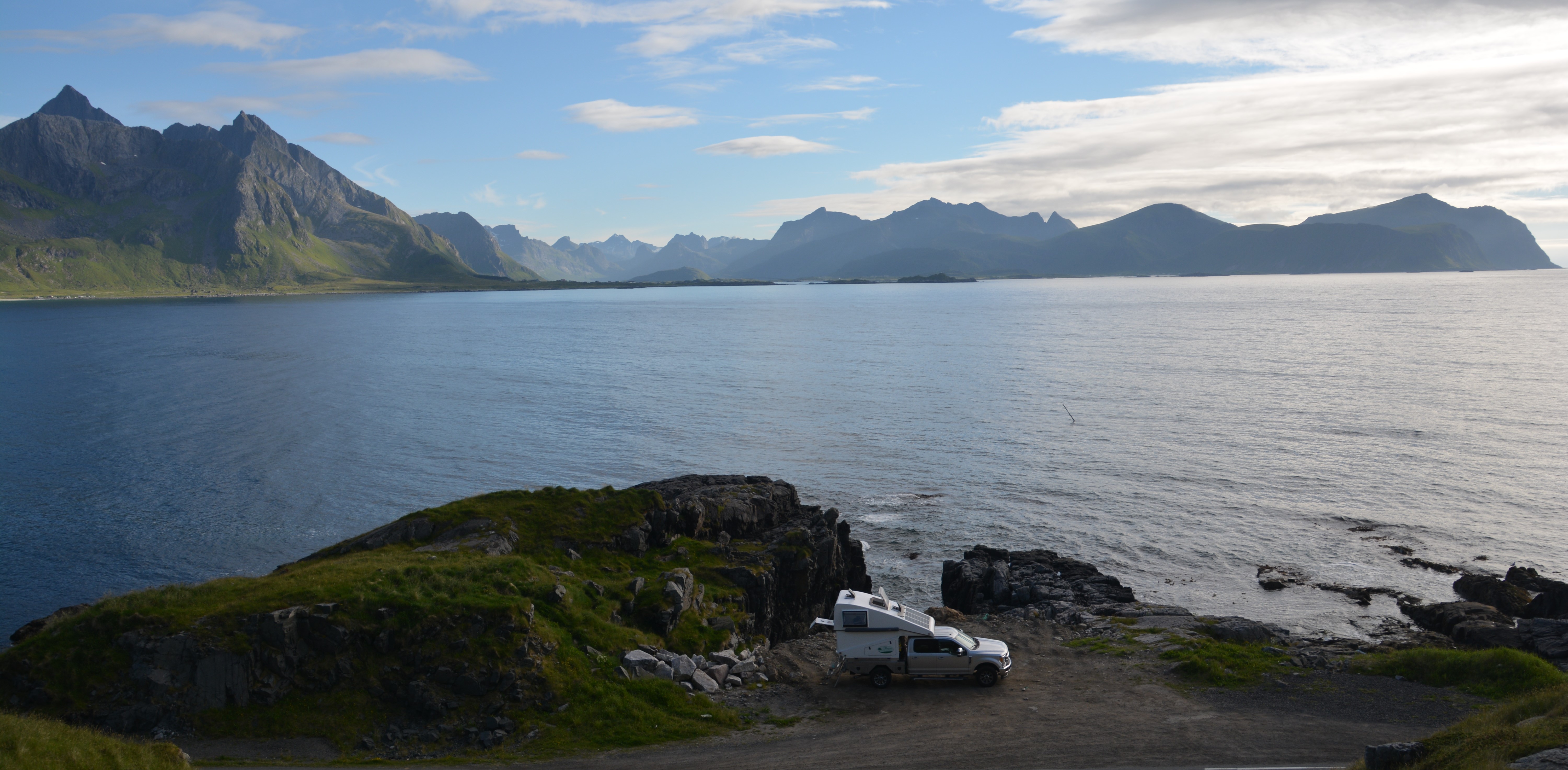 Well, our time on the Lofoten Islands was not perfect. After meeting thousands of vehicles on the narrows roads of three continents it finally happened. Tramp’s side view mirror clipped the mirror of an ongoing vehicle, flipped out of its casing and landed on the road. I picked it up and duck taped it back into its casing – almost as good as new!
