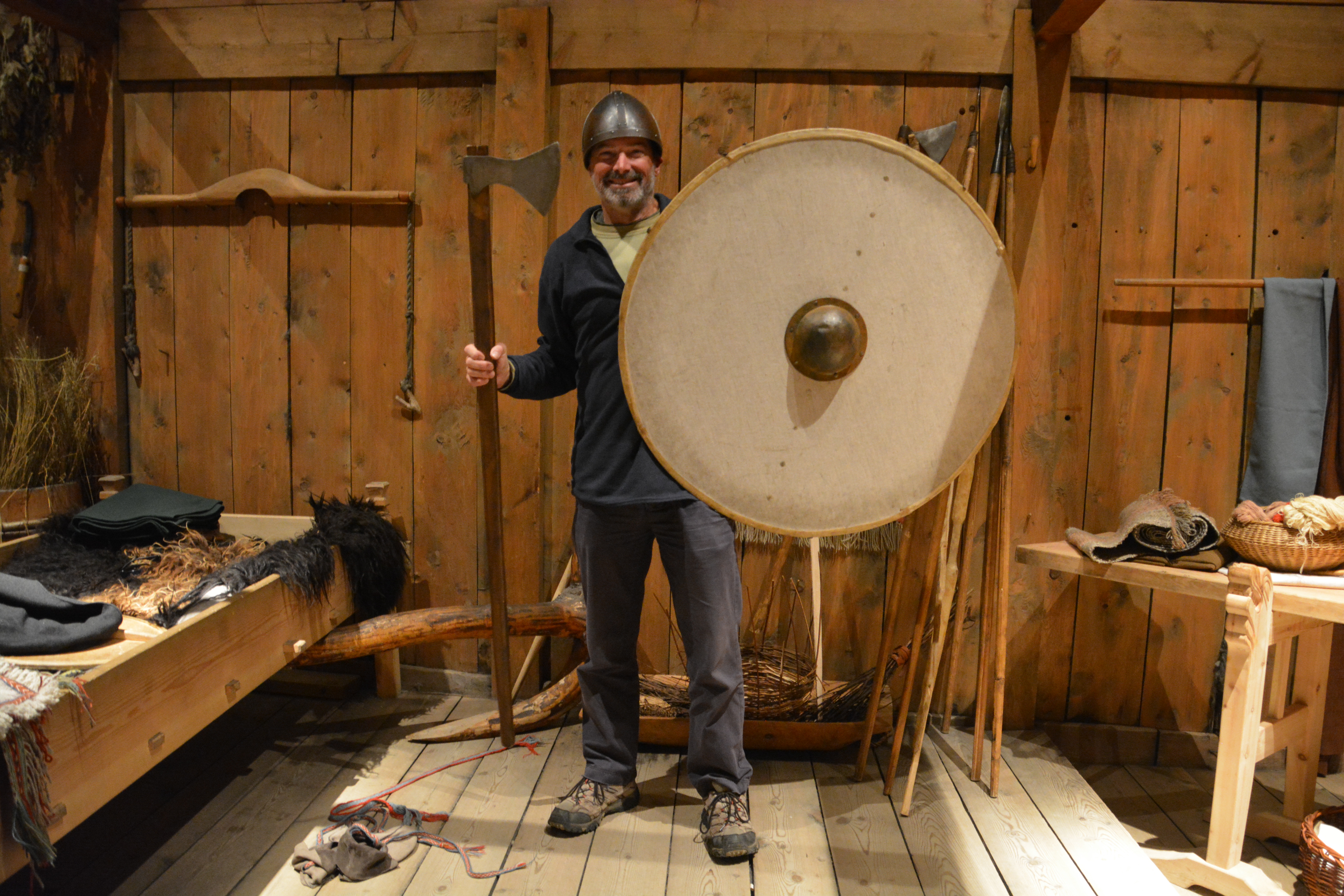 Julie and I walked through the long house where the Vikings would all live – especially in winter – and then walked down to the nearby lake to try our hand at archery, axe throwing and watch a Viking ship sail away, all very cool.