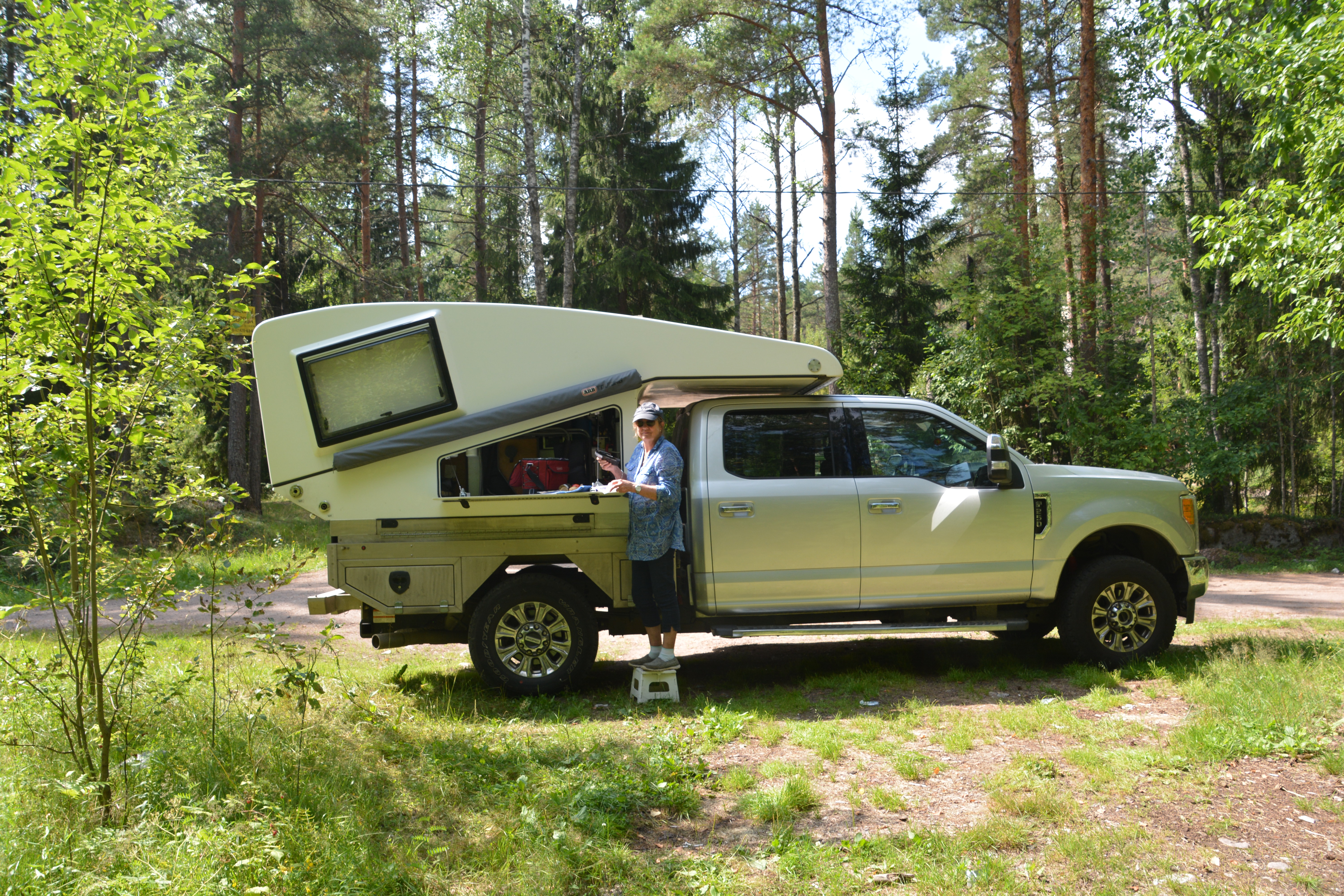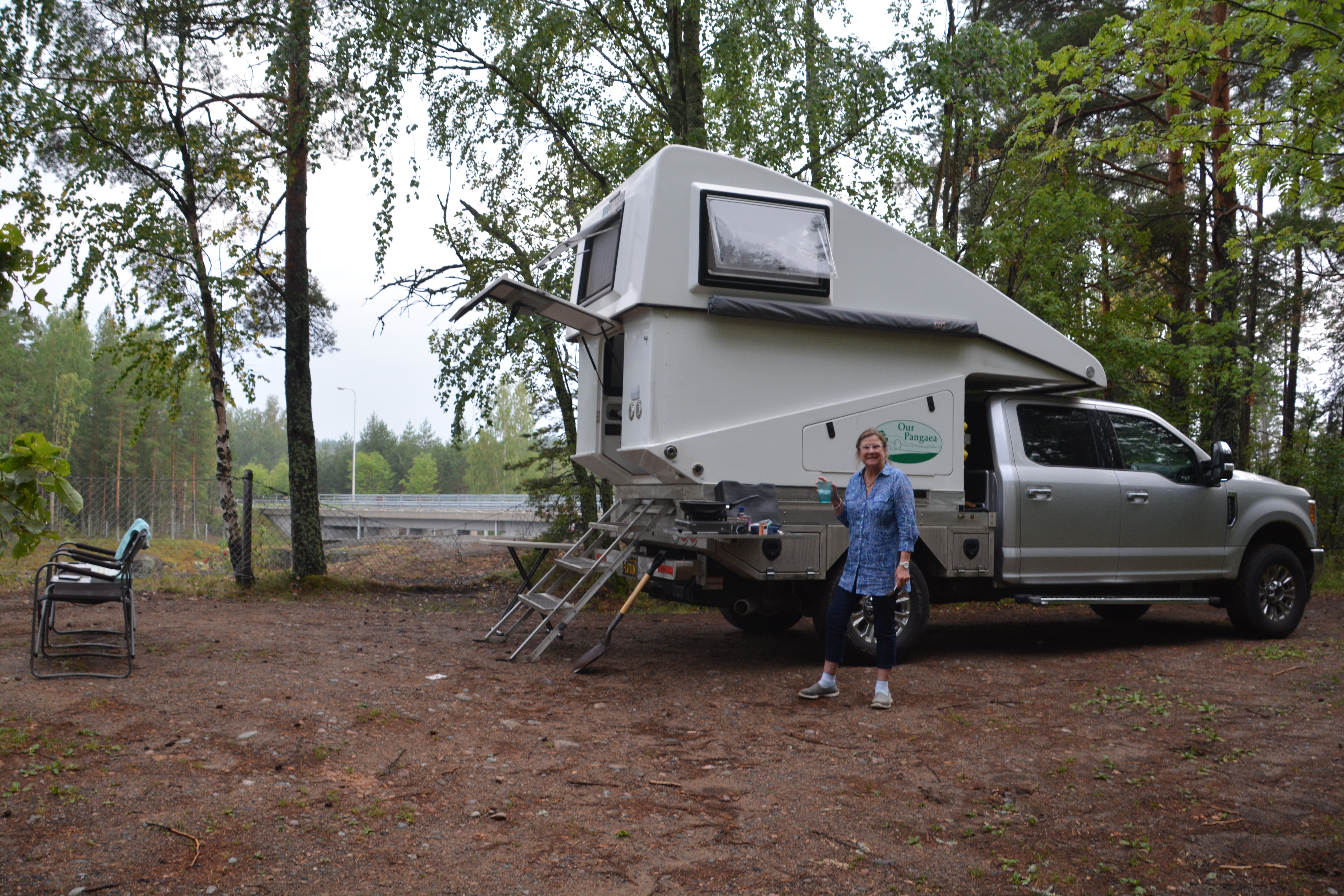 We then had the cursory search of the truck which included me raising Tramp’s top so the Customs official could look through our fridge and cupboards – the first border crossing on this trip when I had to do that – and then a polite wave through the border. That wasn’t too bad. But wait…we were flagged down at the last second and Julie was asked to step out of the car and then escorted in to sit inside. A Customs official climbed into Julie’s seat and instructed me to drive around to the huge X-ray machine nearby. After some more delays Tramp was X-rayed, the third time he’s had that privilege, Julie and I were reunited and we drove off into Russia.