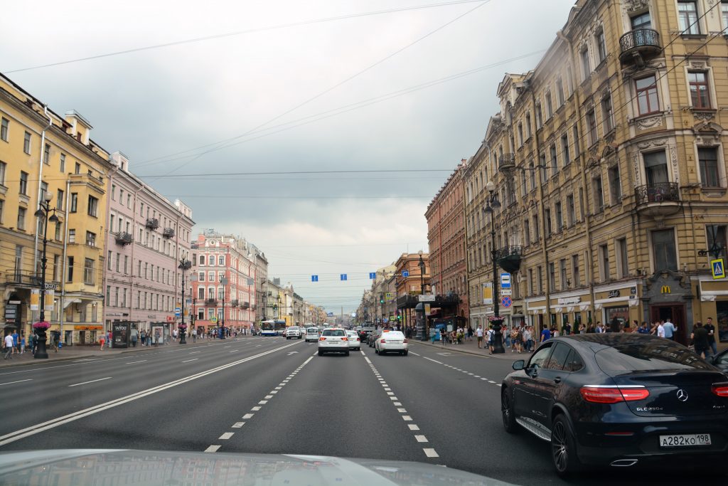 The drive from the border to the gleaming city of St. Petersburg only takes a couple of hours and passes through the continuation of forests and lakes we had been seeing for the last couple of weeks. Speed limits were completely ignored and slower drivers pull over on the shoulder – which can be a bit tricky – to let faster drivers blitz past them. Trucks can pass slower trucks simultaneously in both directions which gives you the disconcerting view through your front window of four trucks abreast on a two lane road.