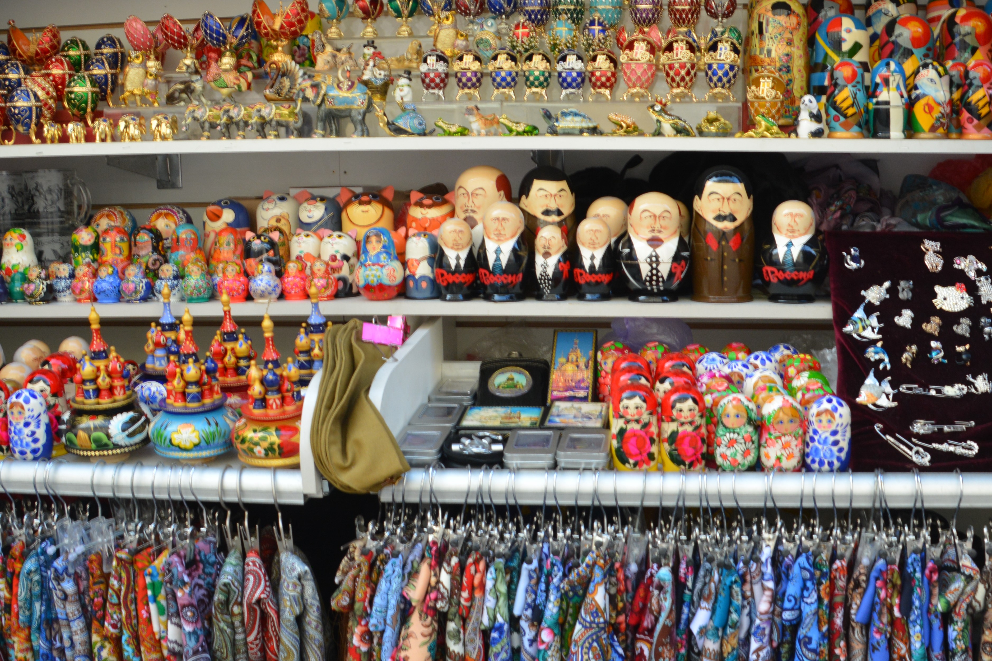The Russian dolls which fit inside of each other are a big hit with tourists but I’m not sure about the ones featuring Lenin, Stalin and Putin