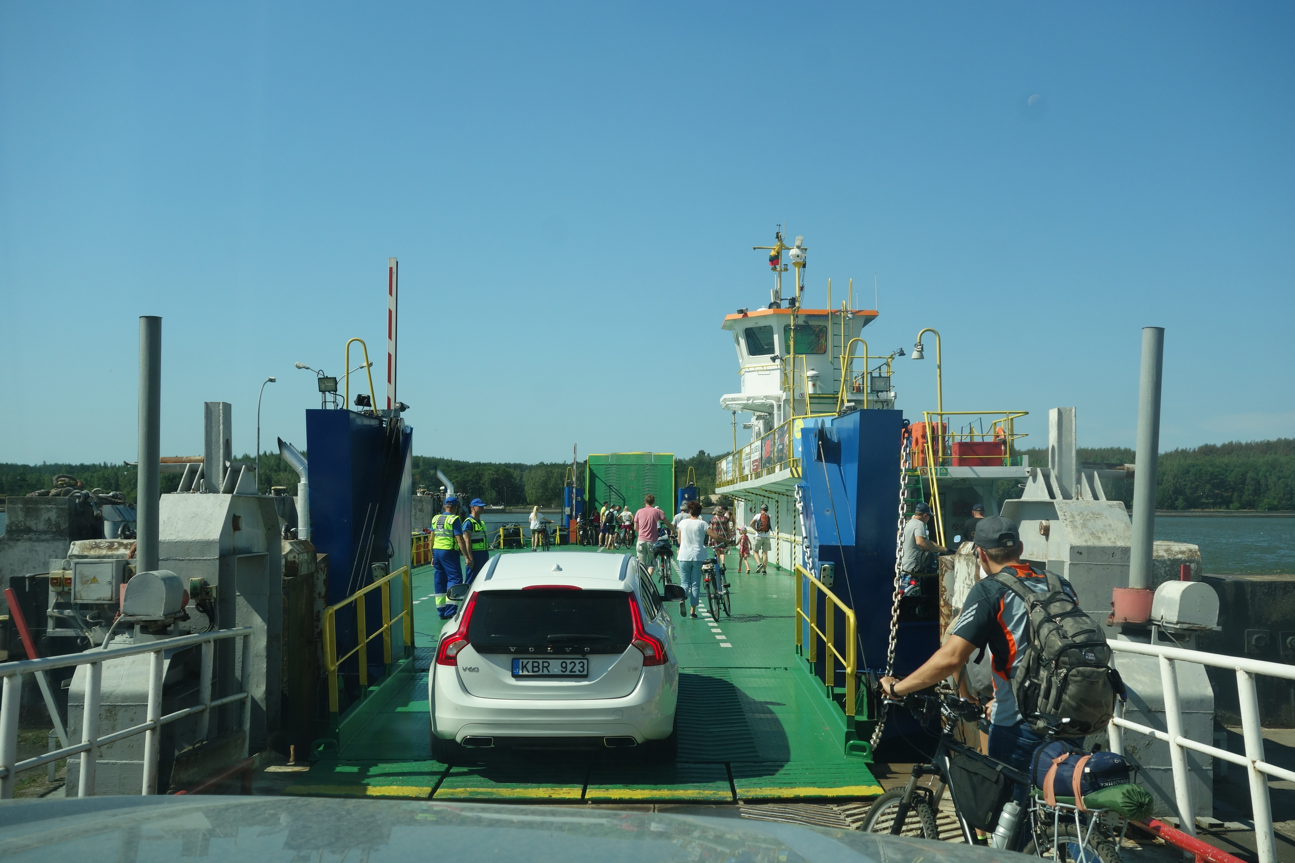 There was a massive queue of vehicles waiting to climb onto the ferry for the Curonion Spit – a big risk when we arrive on Saturday in peak summer season