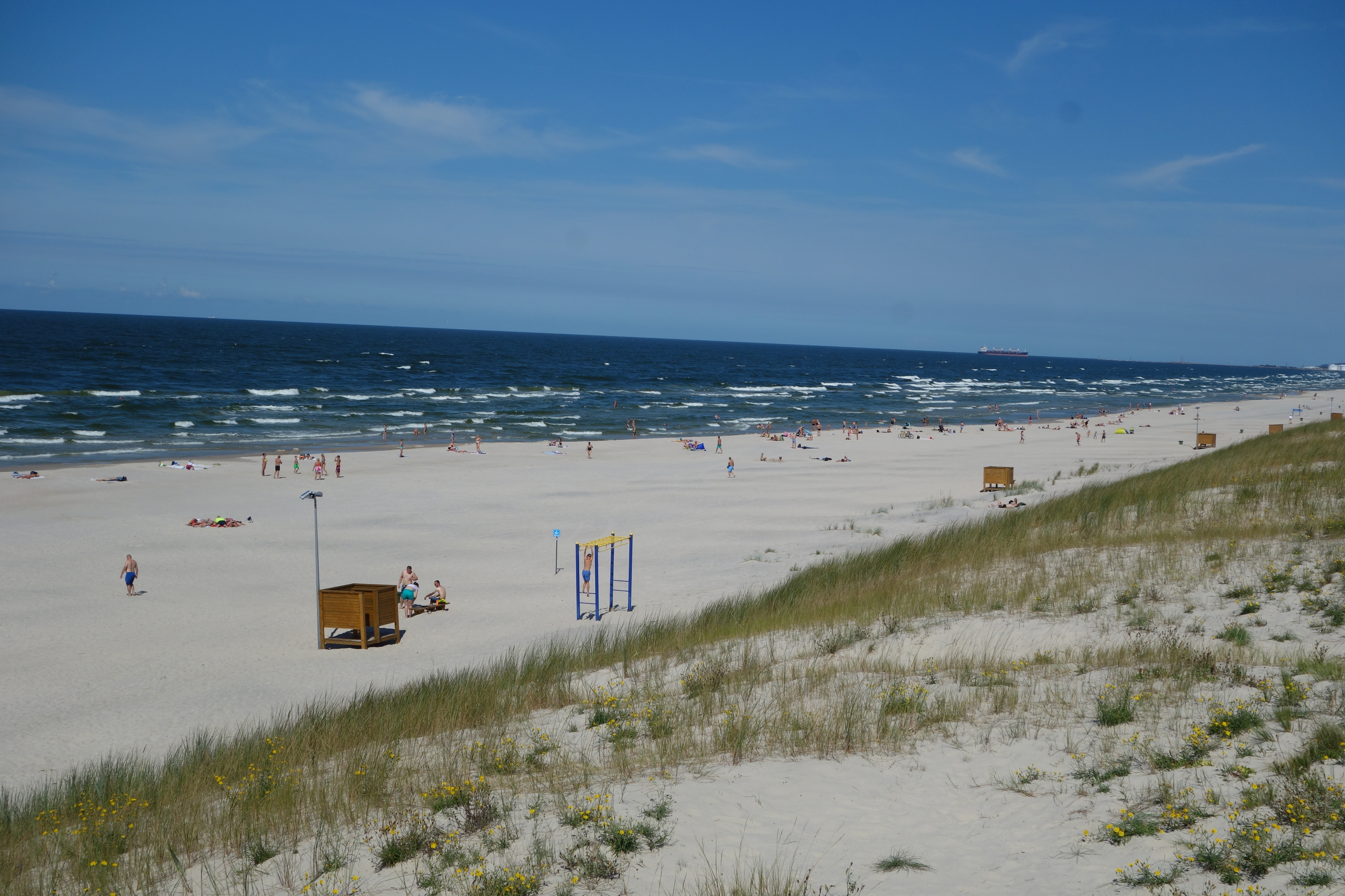 We camped that night amongst the pine trees south of Saiuliai and the next day headed out to the Baltic Sea and the port town of Klaipedos. Our goal for the morning was the long finger of sand that runs south from the port all the way across the Russian border towards Kaliningrad. Called the Curonian Spit, it is a massive series of sand dunes reaching as high as 50 metres running parallel to the coast, today part national park and part beachside resort.