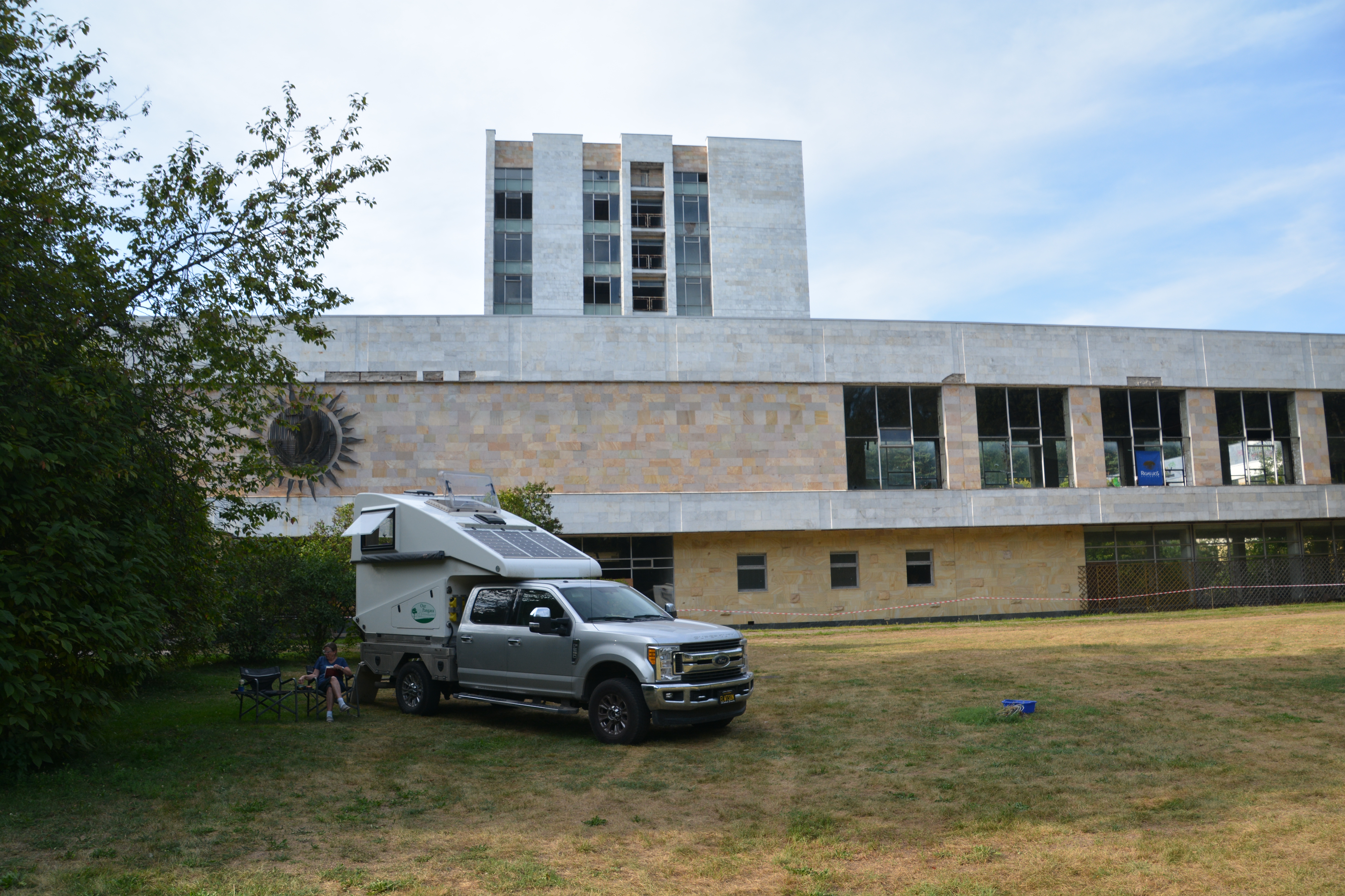 We’ve camped in a lot of amazing places but how about in the shadow of an old Soviet hotel, long since abandoned and crumbling apart