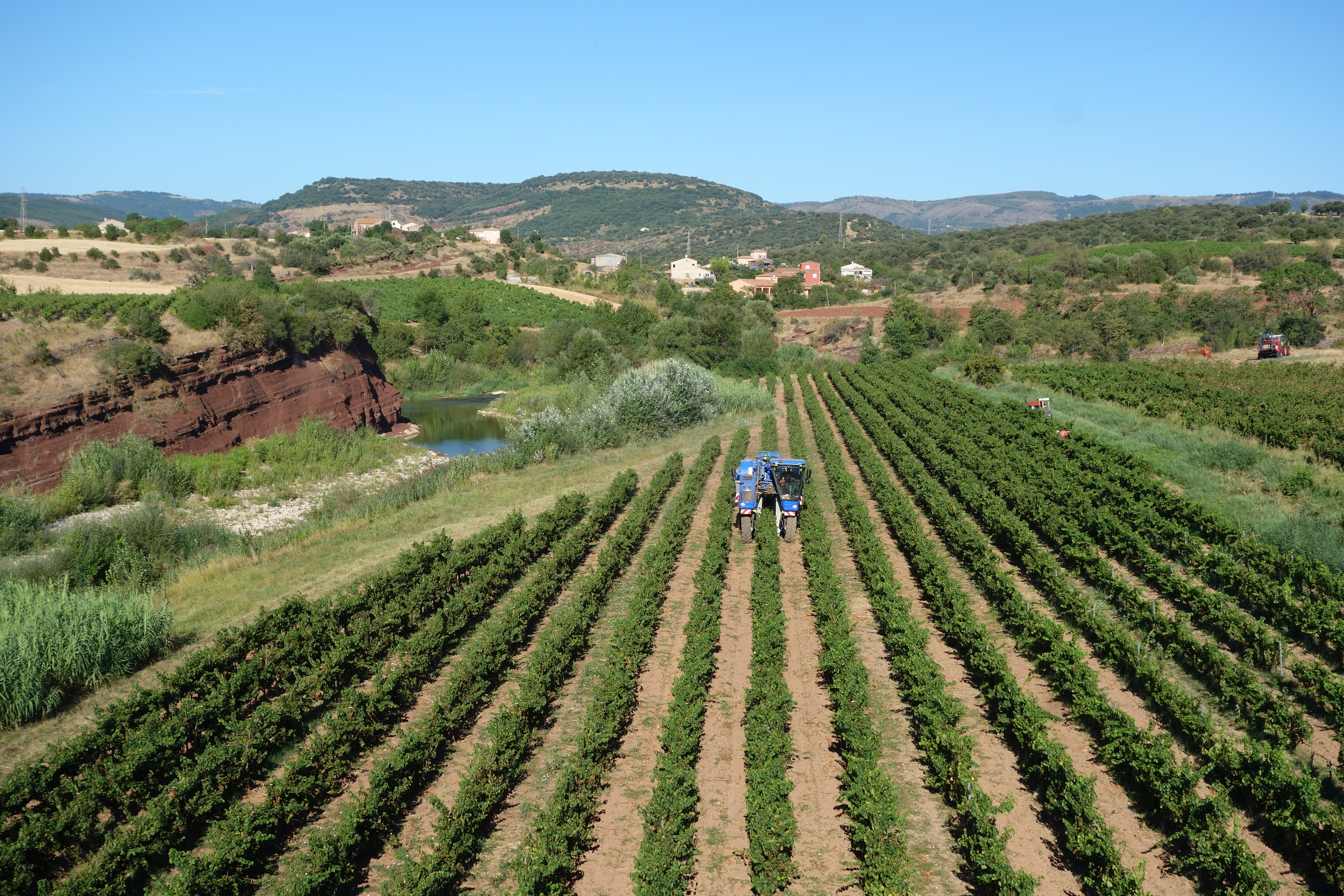A typical scene from the south of France at this time of year, a harvester slowly going up and down his beautiful rows of grapes