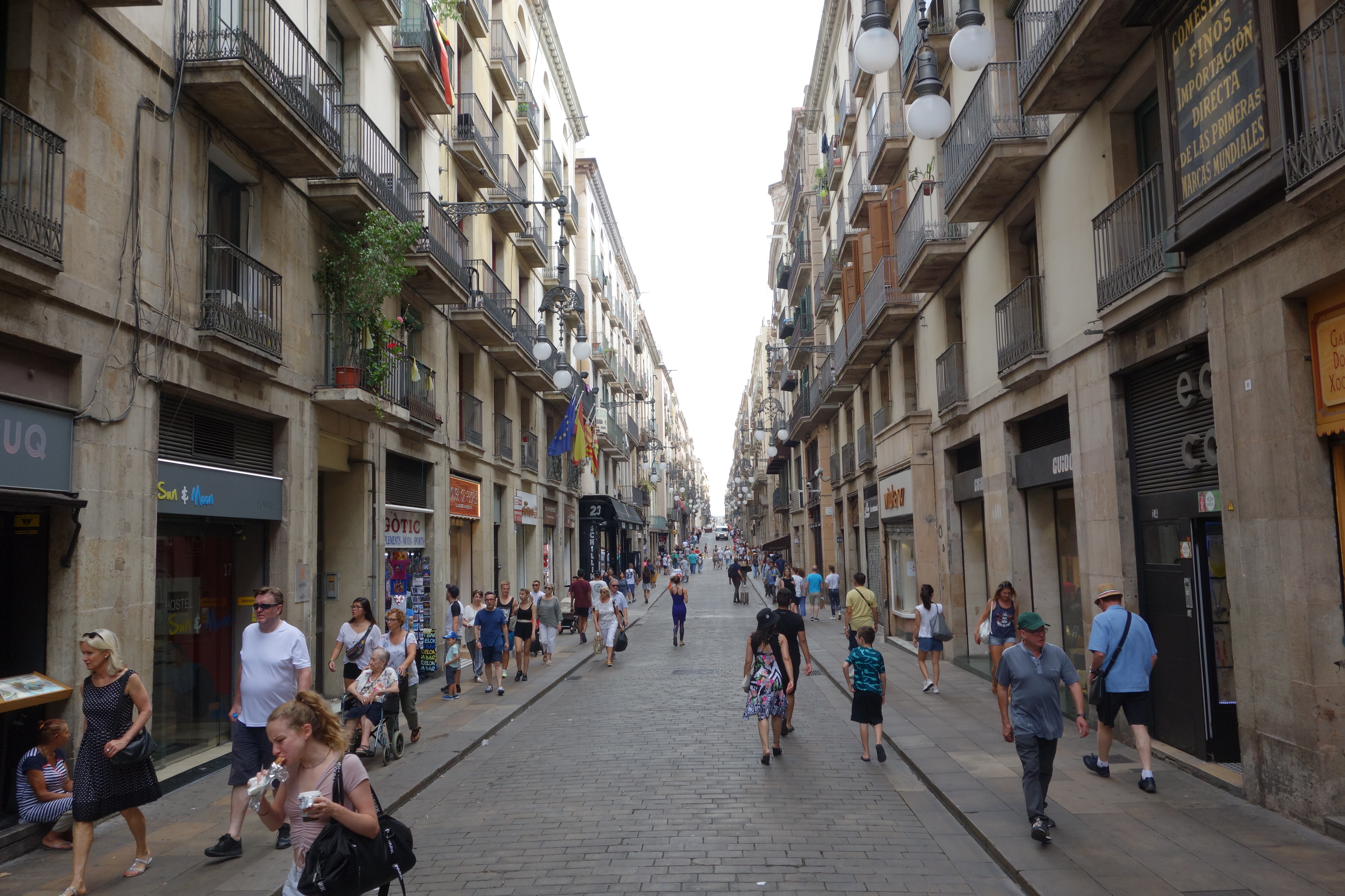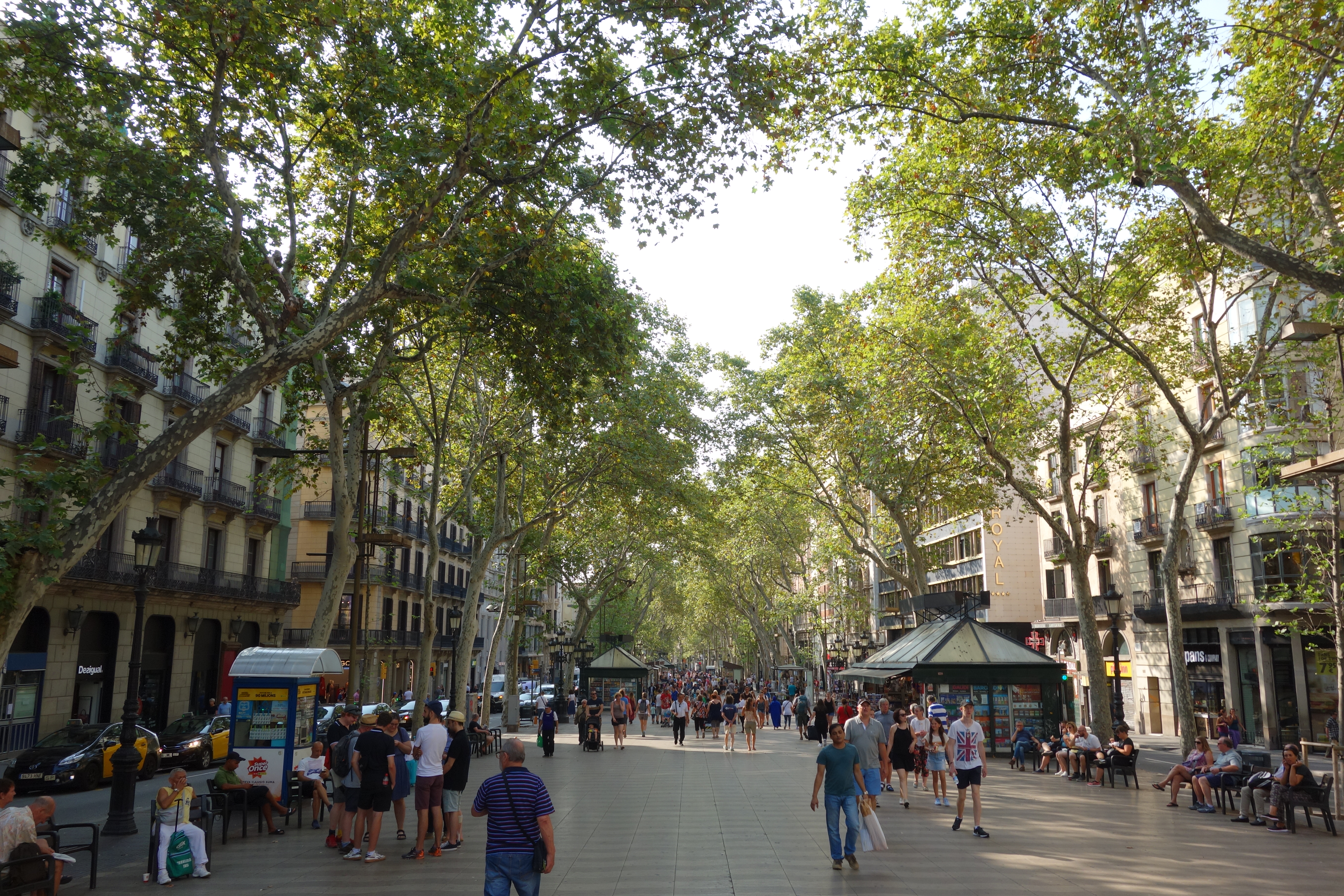 It would be easy to say that the Champs Elysees in Paris is Europe’s most famous street and perhaps London’s Oxford Street would get some votes also. But there can be no doubt that La Rambla in the heart of Barcelona is in that class, its wide promenade separating the traffic along beautiful old buildings, cafes, souvenir vendors, flower shops and street performers all vying the space with the constant crowd that moves up and down La Rambla.
