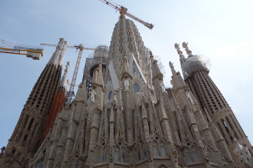 That afternoon we walked through Park Guell to goggle at all of Gaudi’s catching and unusual architecture before arriving at La Sagrada Familia. The basilica, which has only eight of its intended 18 towers completed, is designed like no other, full of religious symbolism but sprinkled with oddities like towered topped with large bunches of colourful fruit.