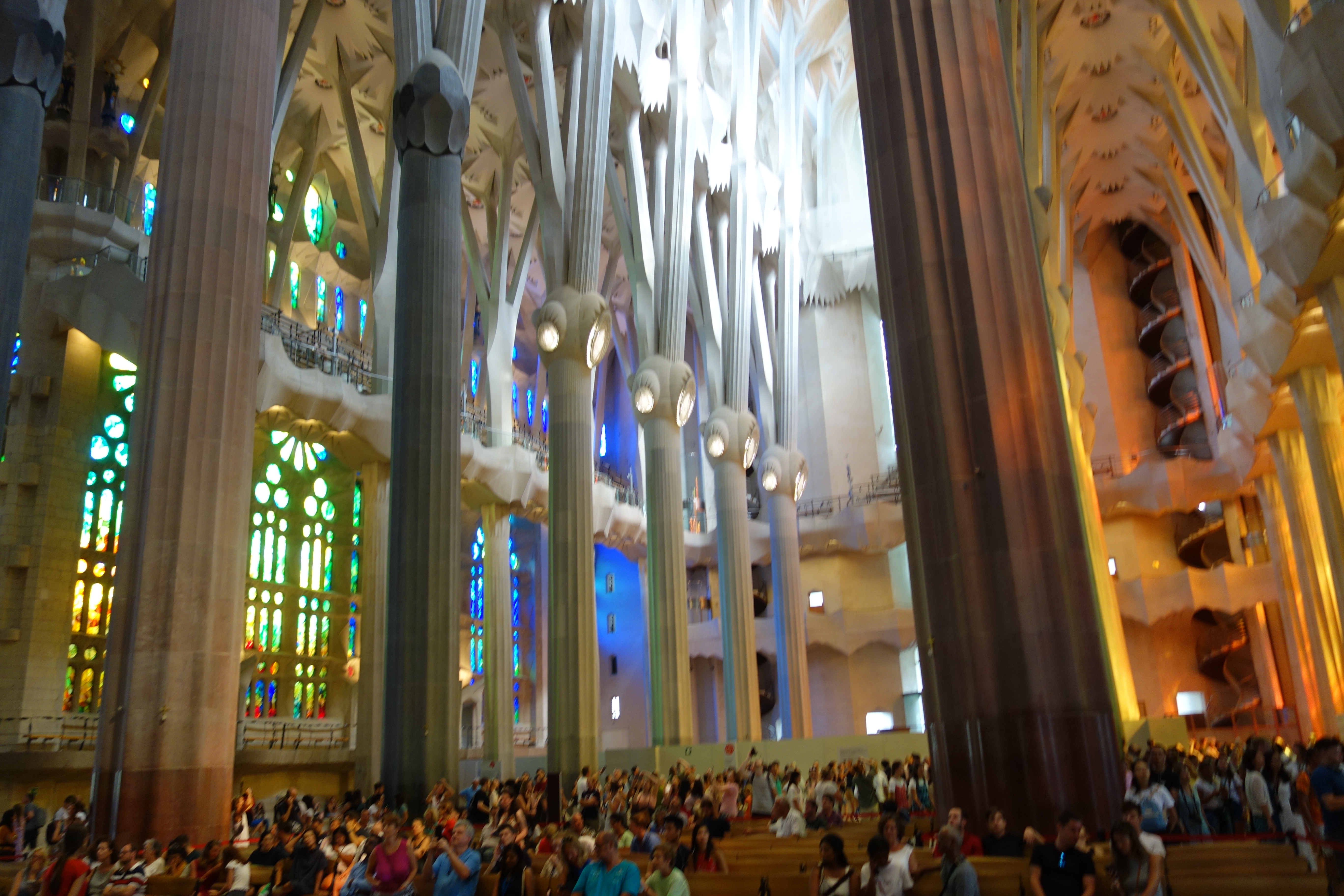 Walking into the basilica takes your breath away. Bigger than expected, pillars designed like spreading trees to help hold the immense roof, stained glass windows of dazzling colours, no chapels or vaults to distract from the overall size. We used the audio guide to get the full picture but all the scenes, both internally and externally, are amazing without the words.