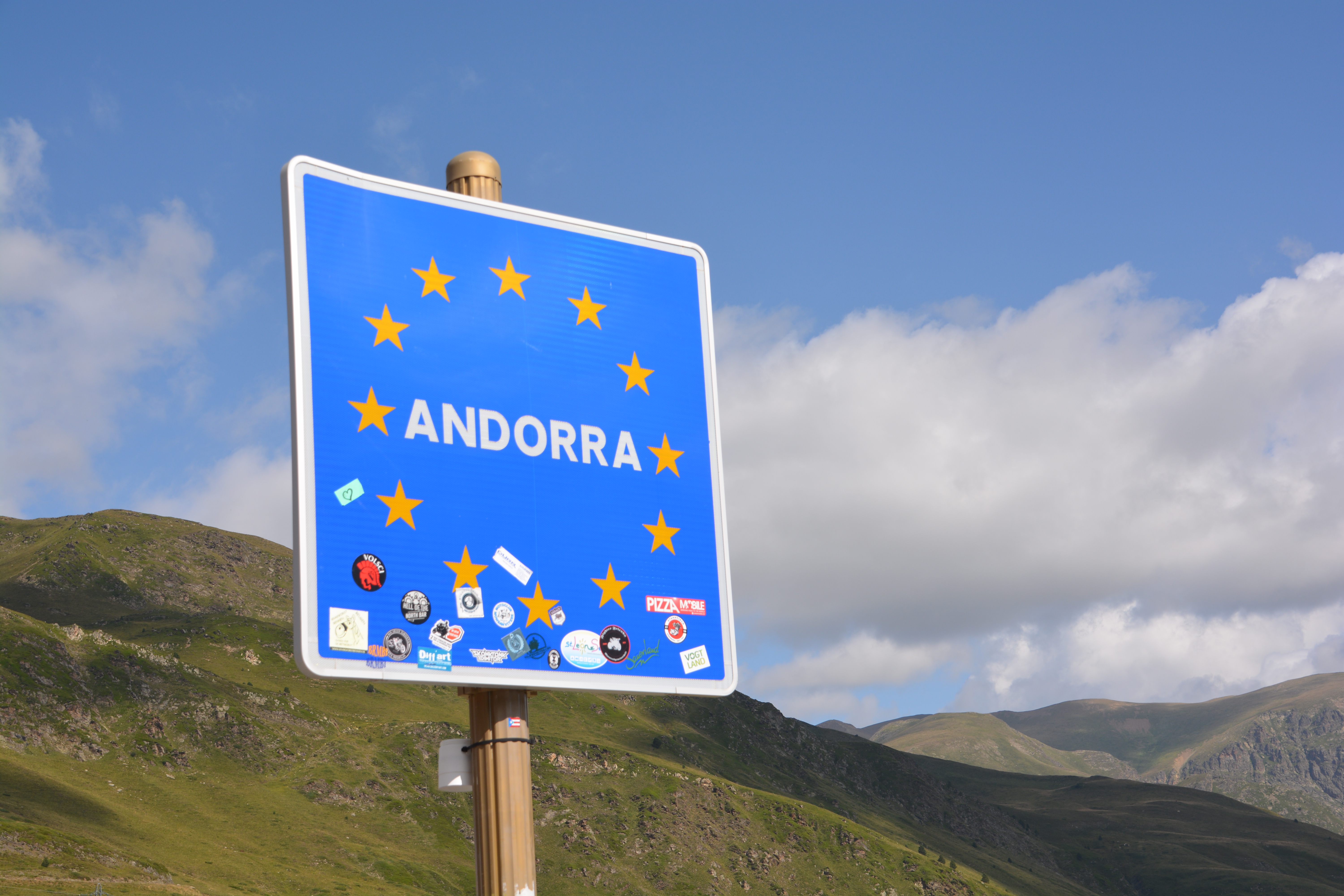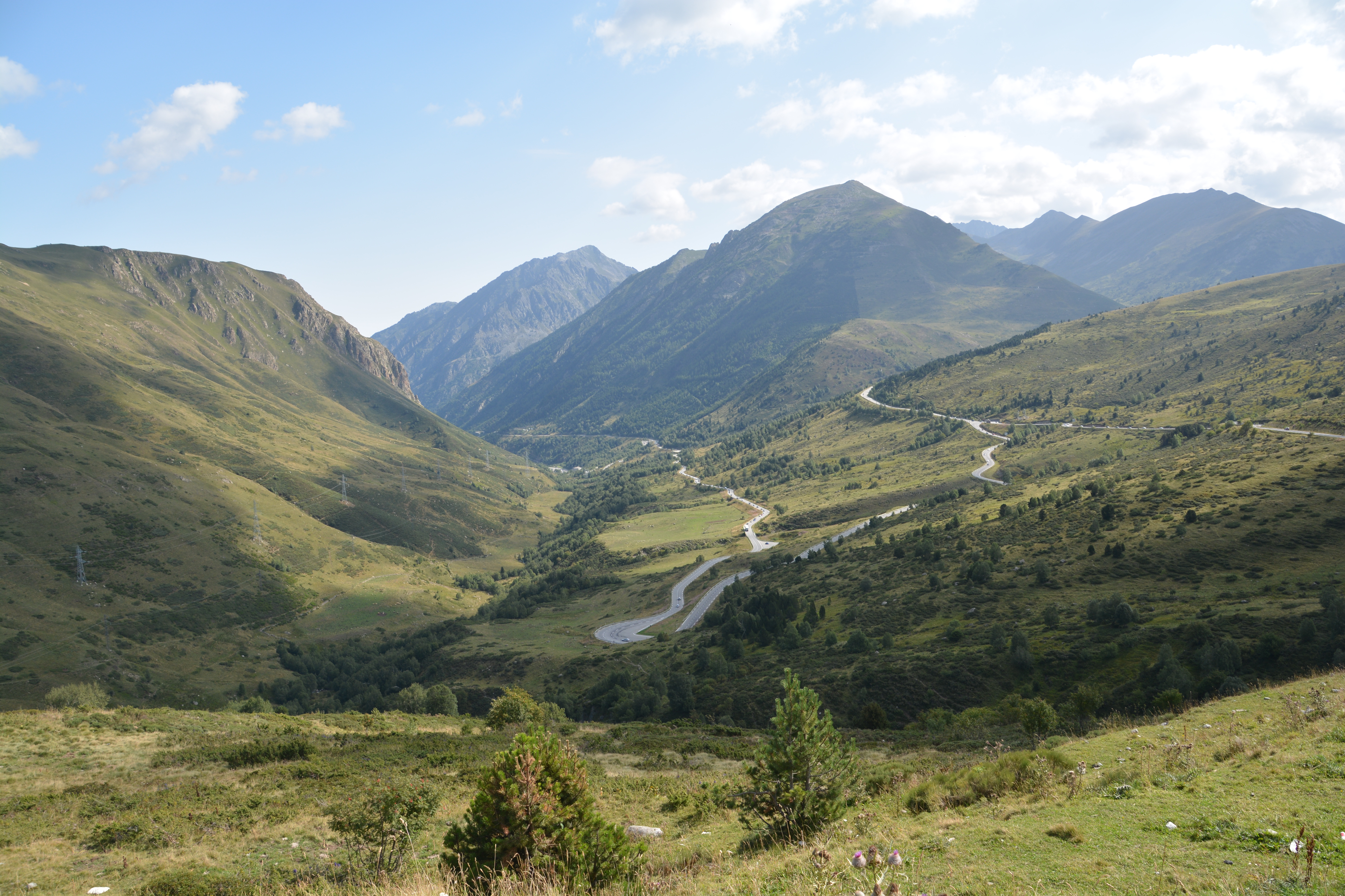 Wounded but not deterred, we camped that night in the foothills of the French Pyrenees Mountains, cow bells aplenty, near a small village at 1,300 metres. The next day we followed the winding road, above the tree line, through the dramatic switchbacks until we hit the border of the small principality of Andorra. Andorra is an anachronism of European geopolitics, high in the mountains, stuck between France and Spain, like a friendly cyst on the back of Europe.