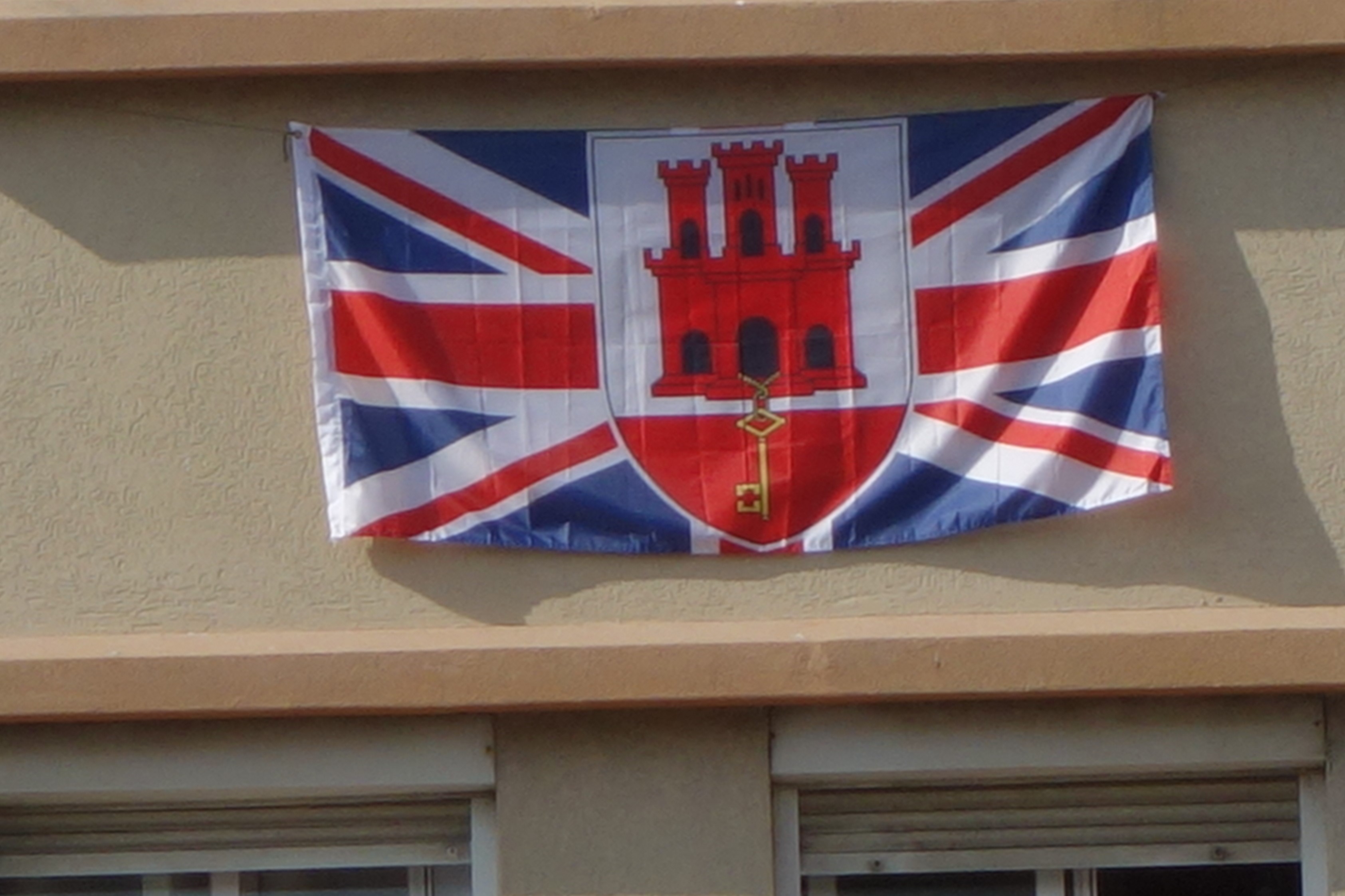 The Gibraltar flag, flown proudly and protectively all across the rock, reminding all who care about who is in control here