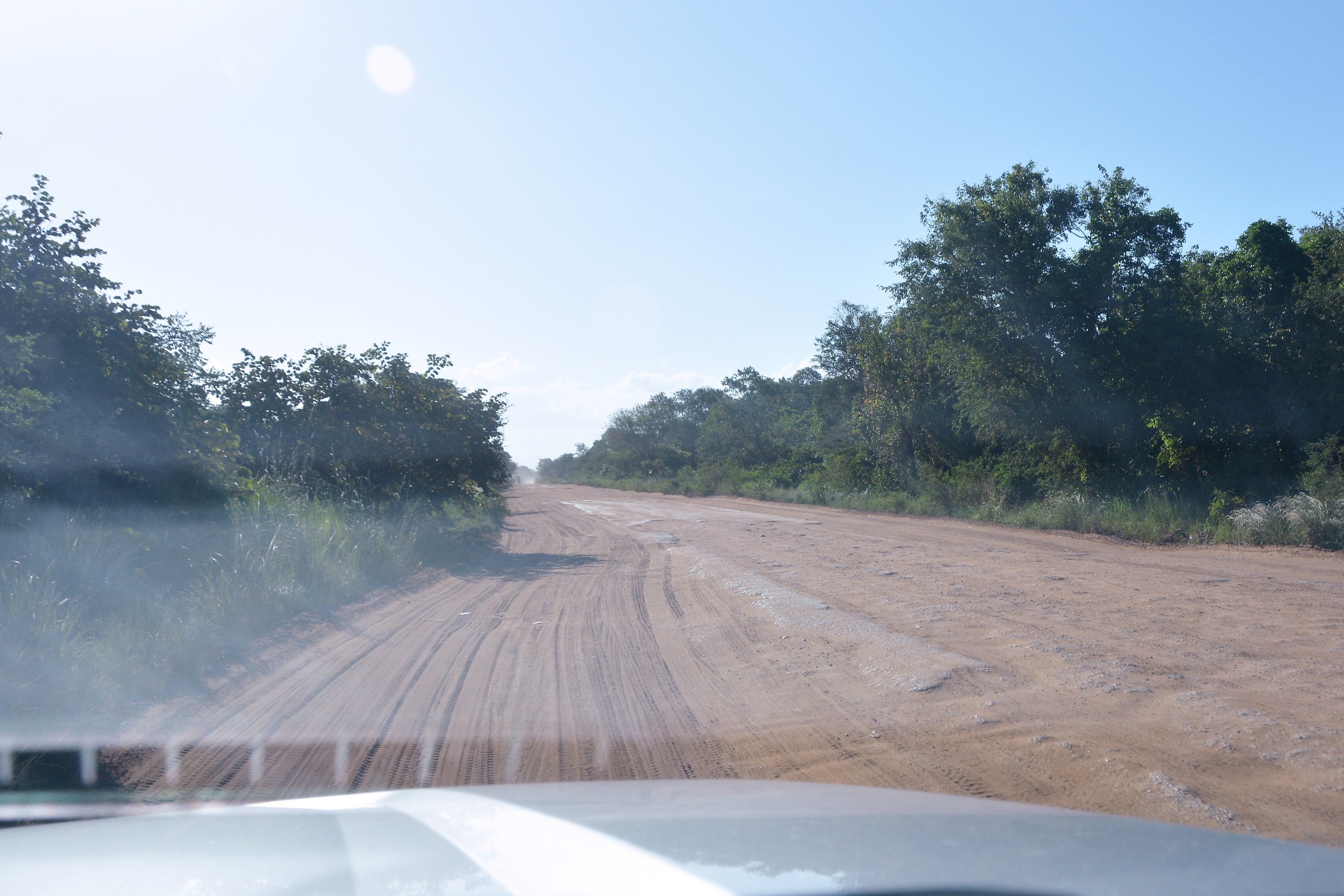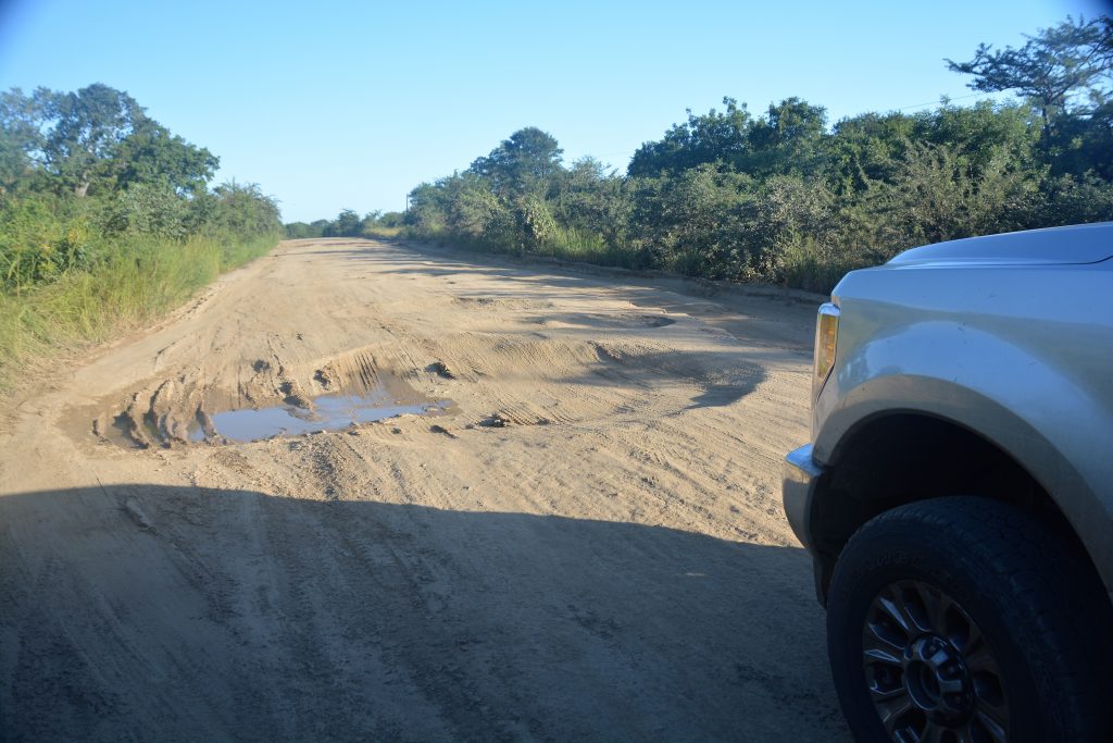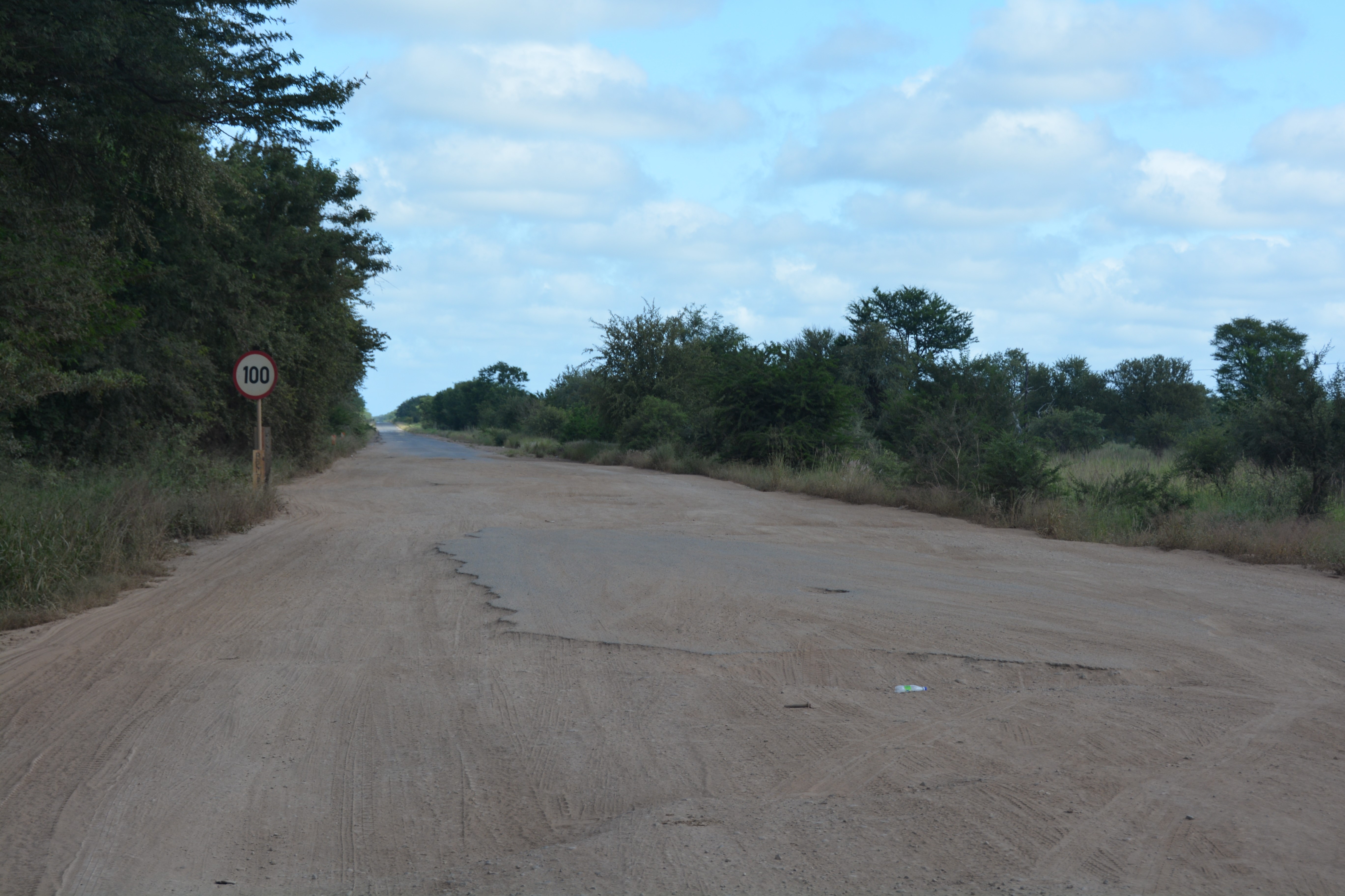 Some holes could be up to 50-60 cm (2 feet) deep with steep walls, other times dirt tracks would have been carved parallel to the old paved sections but they also contained holes of dark abyss. How this is travelled in the wet season when its muddy and these holes are all filled with water is beyond us. And how this road can be the only north-south artery of this huge country is part wonder and part disgrace. And we were also hindered by the tray between our camper and truck which we were holding together with a ratchet strap, courtesy of Sani Pass in South Africa.