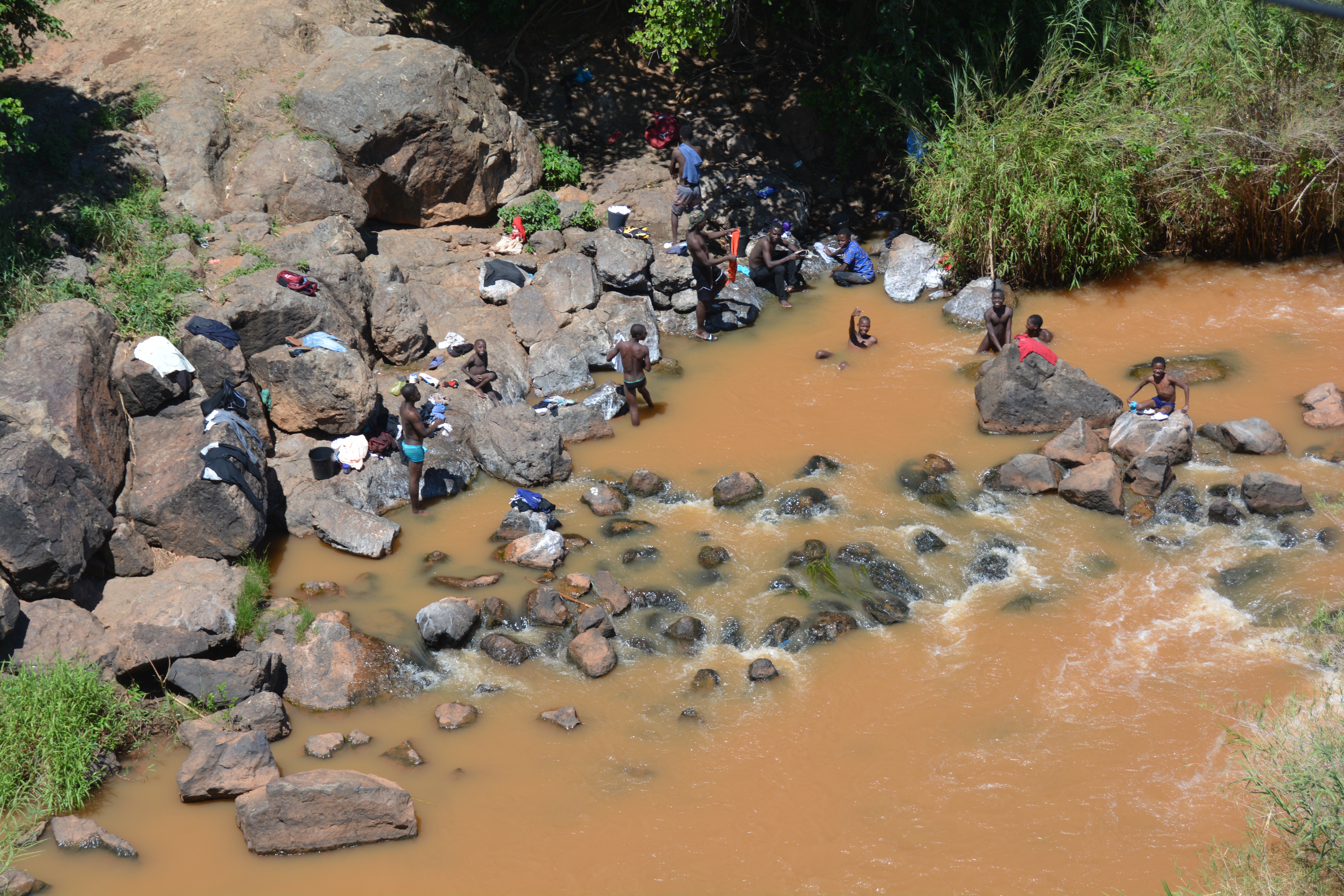 The road crossed many waterways, most filled with women washing clothes while the kids swam in the muddy waters